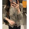 Diseño Estilo Coreano Cuadros Contrastantes Sexy Elegante Camiseta de Manga Larga para Mujer Otoño Nuevo Delgado y Versátil Top Chic