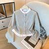 Estilo Popular de Alta Calidad de las Trece Líneas de Guangzhou ~ Camisa Nueva de Manga Larga Holgada para Mujer Otoño Temprano 2025 con Diseño de Dobladillo Plisado