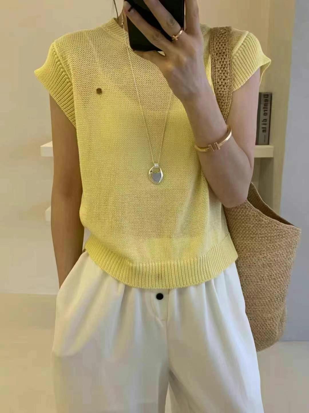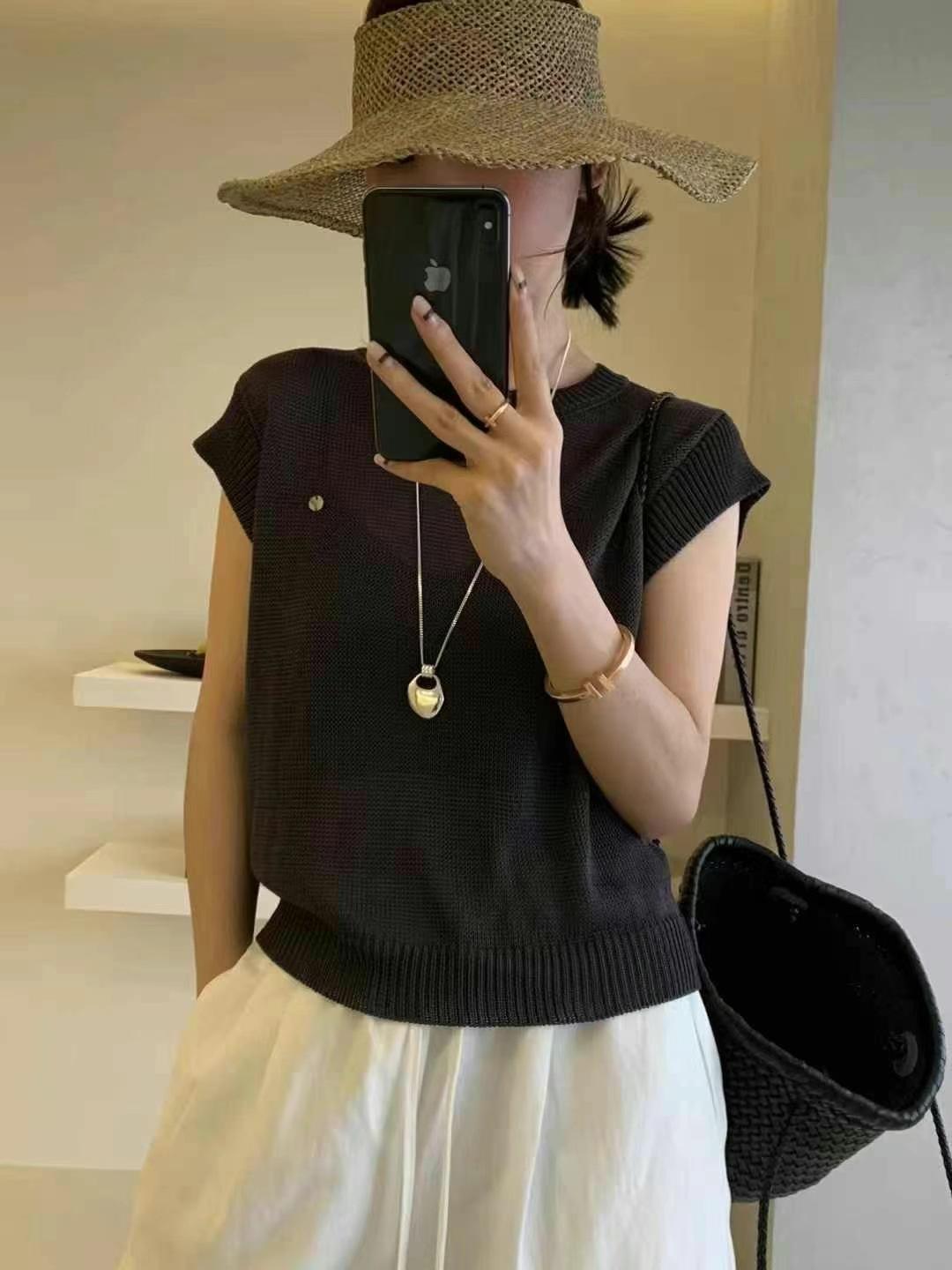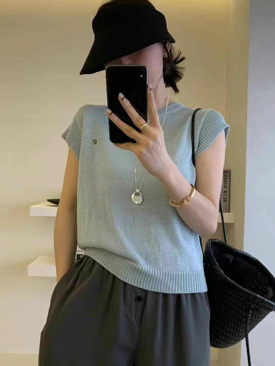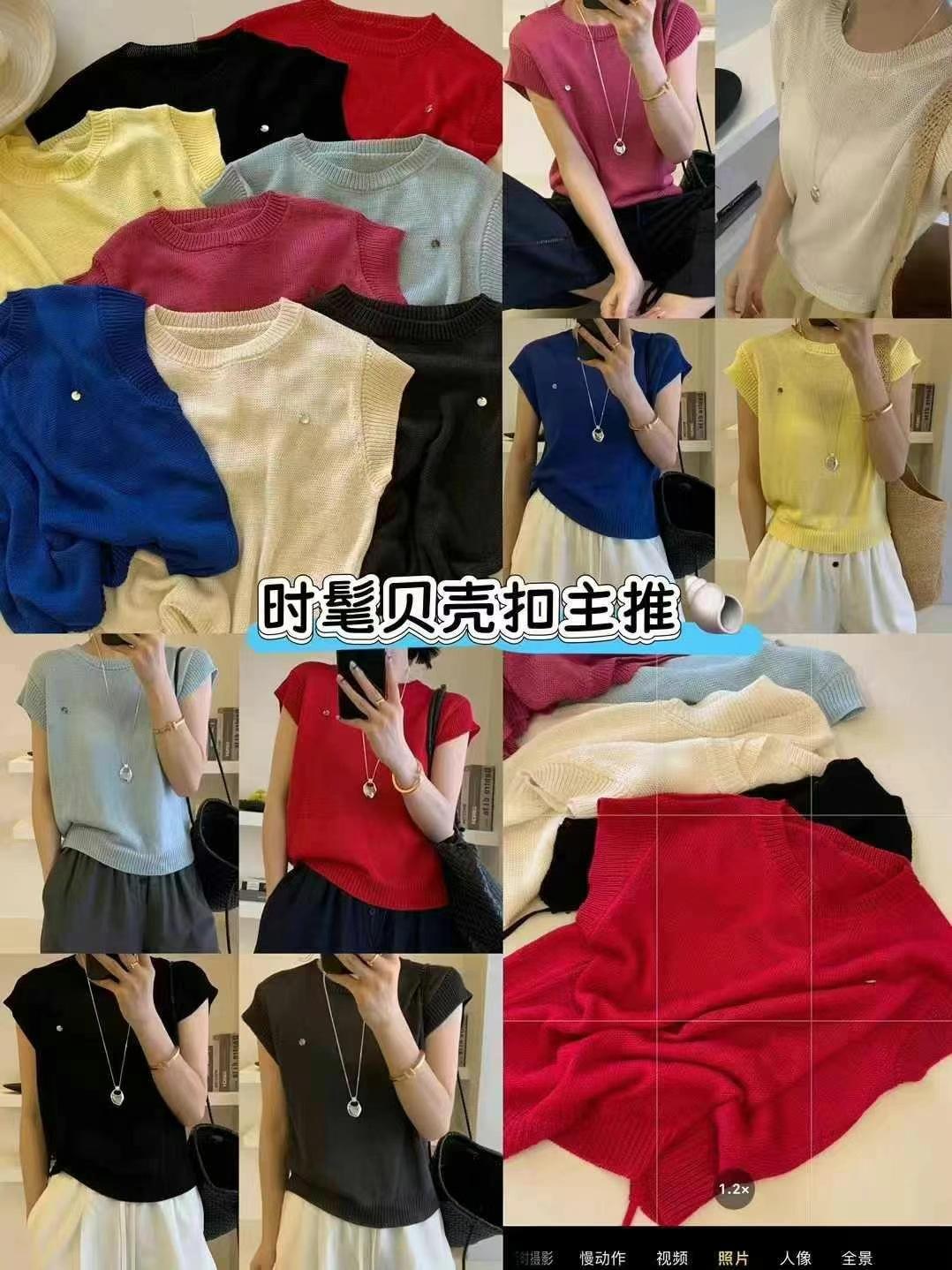 Compra Verano 2025 Nuevo Moda Coreana Versátil Cuello Redondo Manga Flotante Botón Concha Top Tejido Mujer Top Holgado Adelgazante al por mayor en Joom.pro