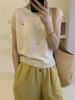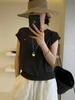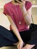 Verano 2025 Nuevo Moda Coreana Versátil Cuello Redondo Manga Flotante Botón Concha Top Tejido Mujer Top Holgado Adelgazante