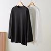 Casual, Relajado, Casual, Versátil Algodón Puro Transpirable Algodón Australiano Manga Larga Hombro Descubierto Holgada Cuello Redondo Camiseta para Mujer en Otoño