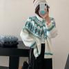 Chic Coreano Otoño e Invierno Retro Diseño Jacquard Contrastante Holgado y Versátil Chaqueta Cardigan de Punto de Manga Larga para Mujer