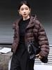Chaqueta Ligera de Plumas con Capucha para Mujer Corta Diseño de Moda Invierno 2025 Empalme de PU Chaqueta Cálida Pequeña de Pan