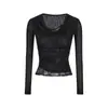 Camiseta de Diseño de Nicho Falsa de Dos Piezas 2025 Color Avena Tejido Ligeramente Transparente Top Delgado de Manga Larga para Mujer