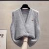 Chaleco de Punto con Cuello en V para Mujer 2025 Otoño Nuevo Holgado Chaleco Exterior Chaleco de Punto para Superponer Moderno