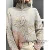 2026 Marca Independiente Otoño e Invierno Nuevo Patrón de Estampado Floral 3D Casual Cómodo Suéter Falso de Cuello Alto y Manga Larga para Mujeres Europeas y Americanas