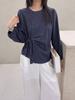 Camisa a cuadros de cuello redondo para mujer de manga larga 2025 Otoño Nuevo Estilo Coreano Top de cintura delgada Camisa simple corta Camisa