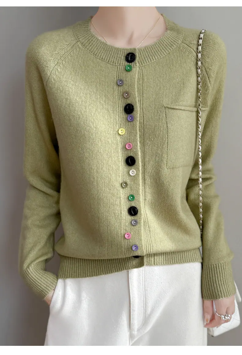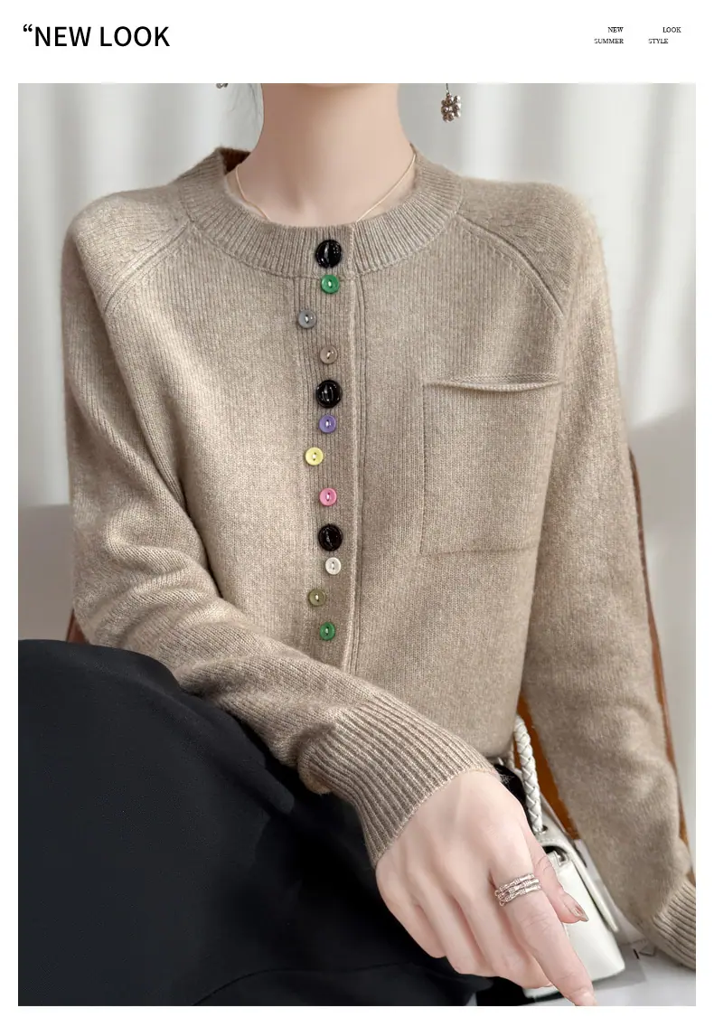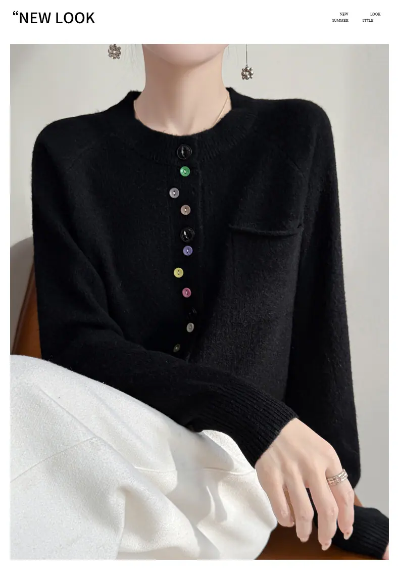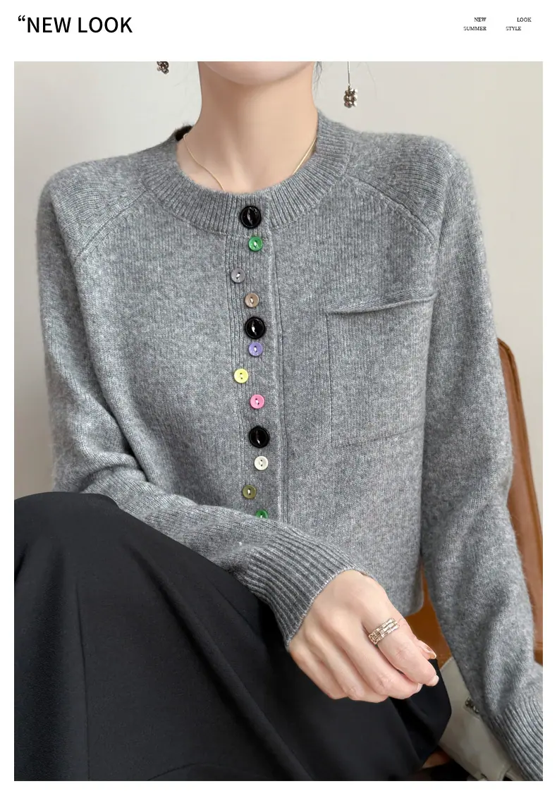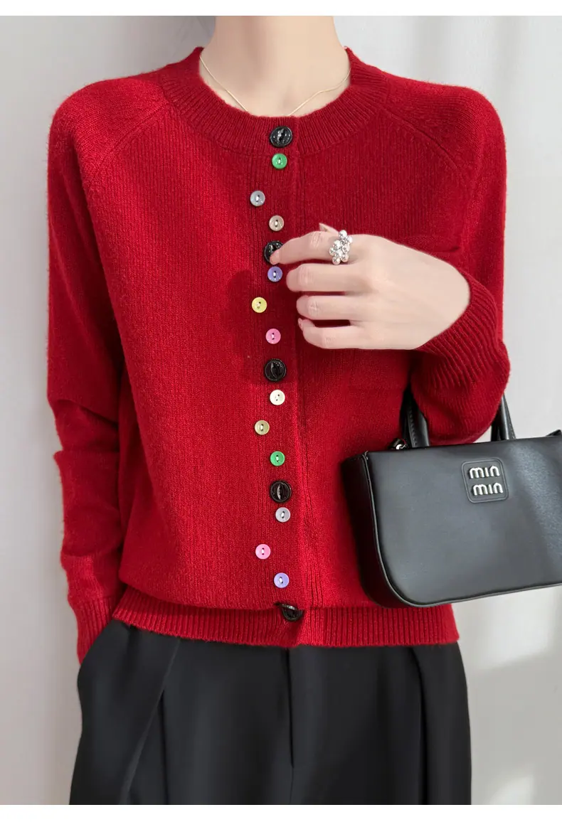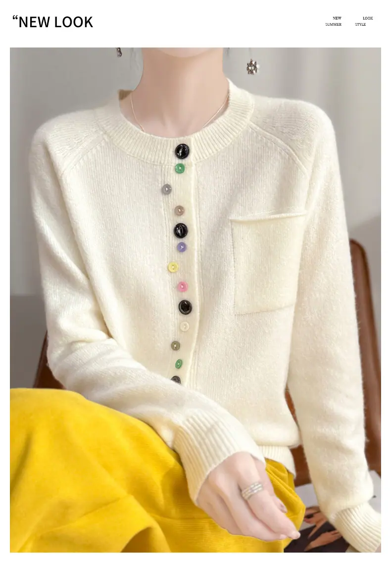 Cárdigan de Lana para Mujer con Botones Coloridos A prueba de Viento y Cálido Suelto y Adelgazante Otoño e Invierno Casual Lazy Ropa Exterior