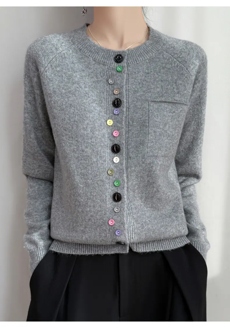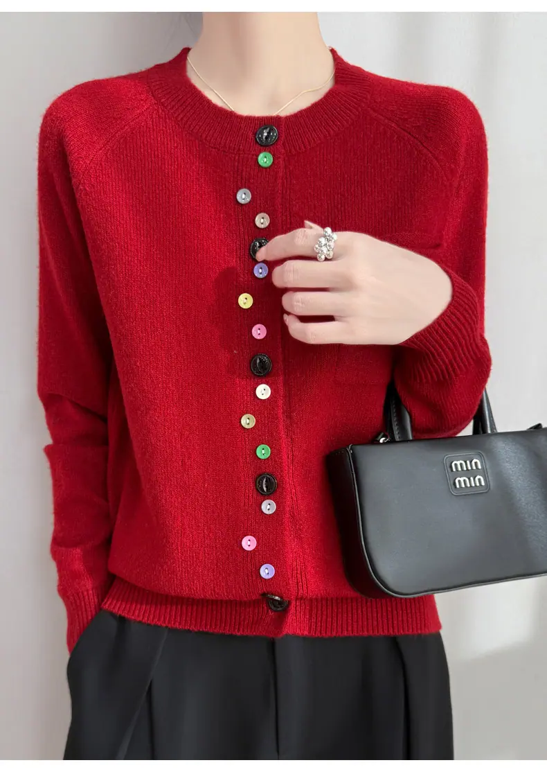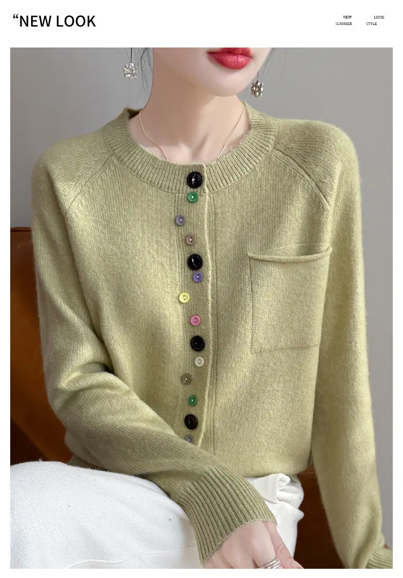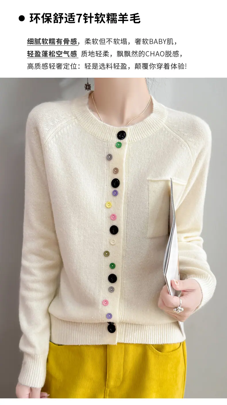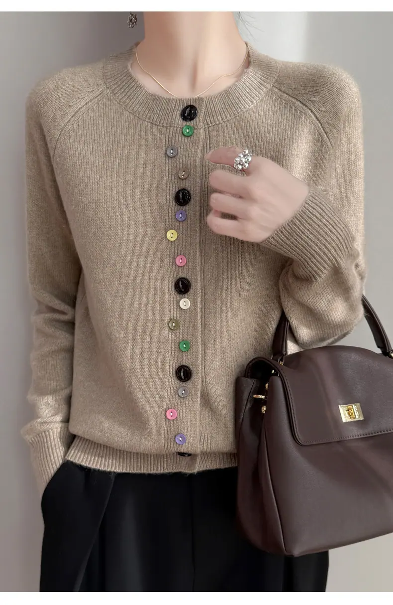Cárdigan de Lana para Mujer con Botones Coloridos A prueba de Viento y Cálido Suelto y Adelgazante Otoño e Invierno Casual Lazy Ropa Exterior