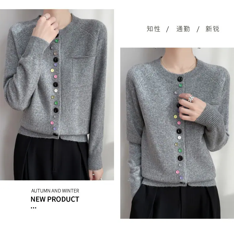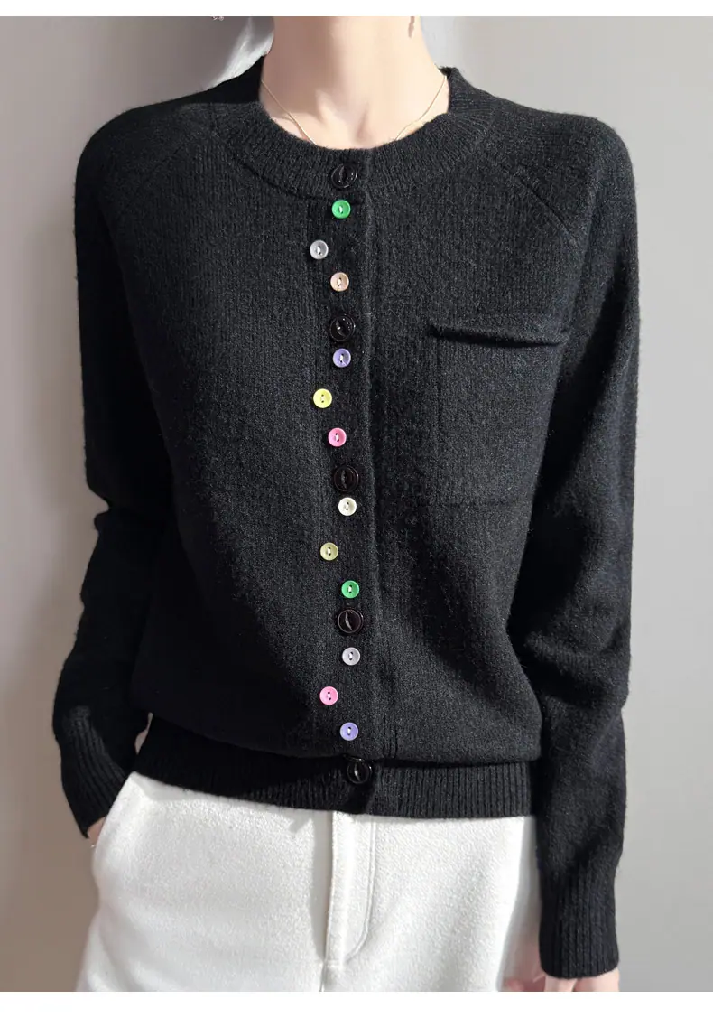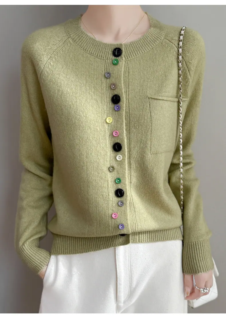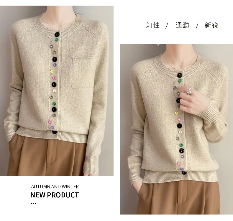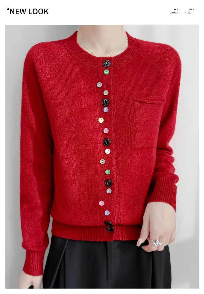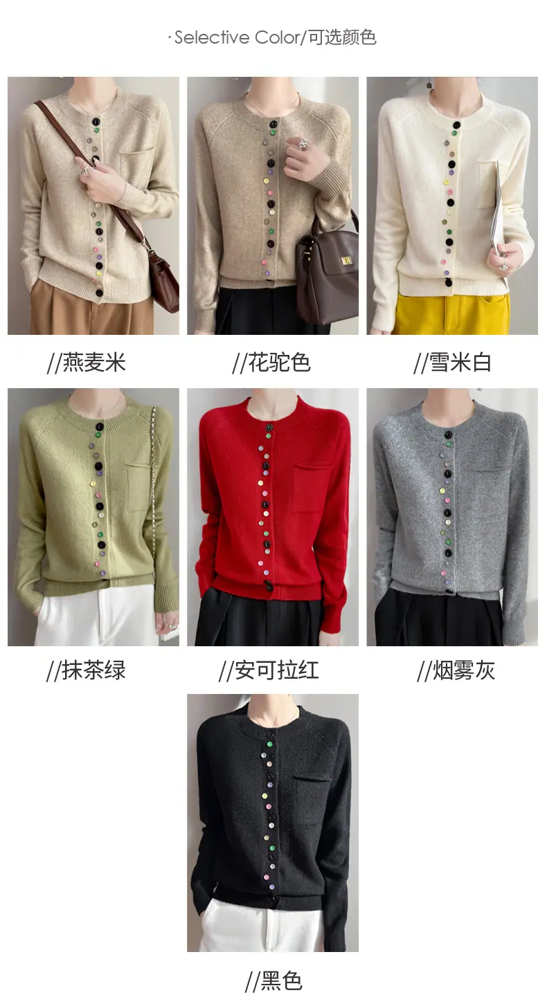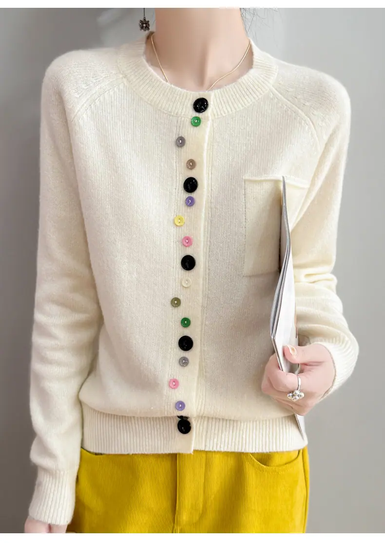 Cárdigan de Lana para Mujer con Botones Coloridos A prueba de Viento y Cálido Suelto y Adelgazante Otoño e Invierno Casual Lazy Ropa Exterior