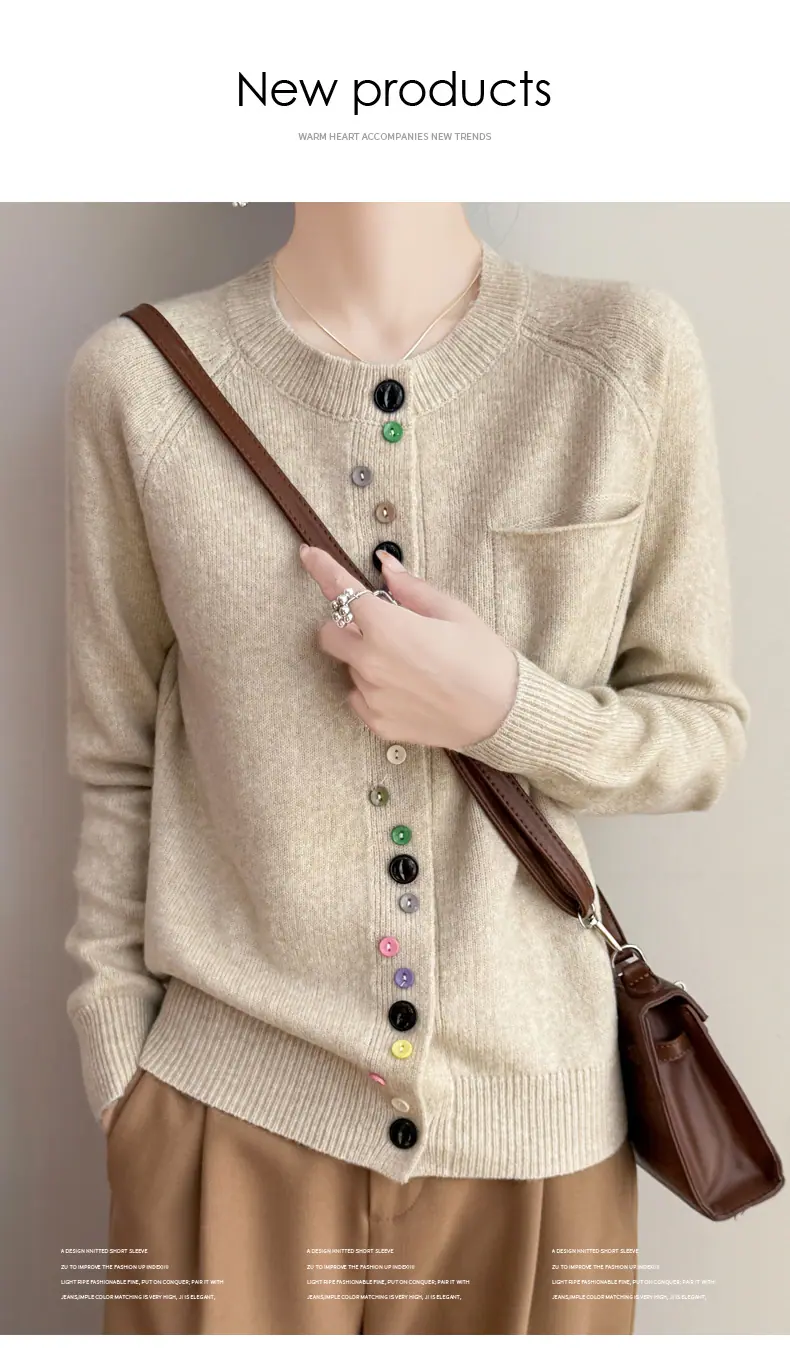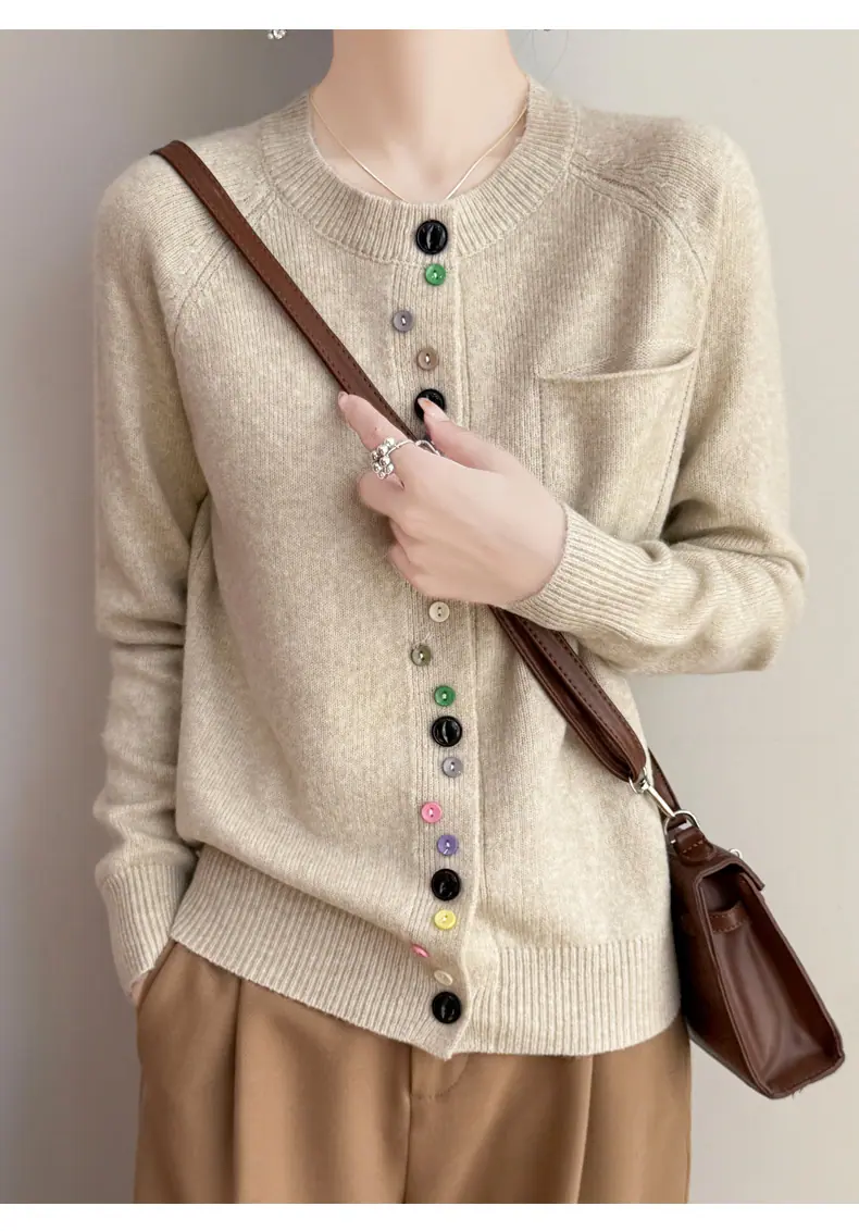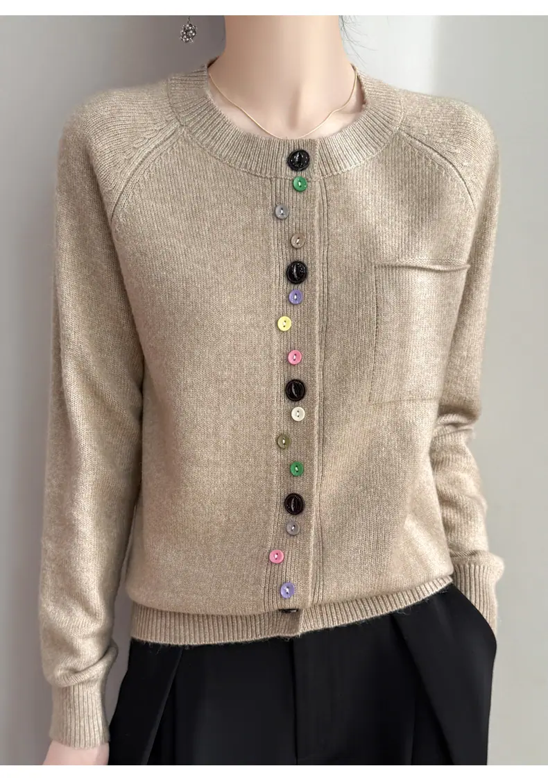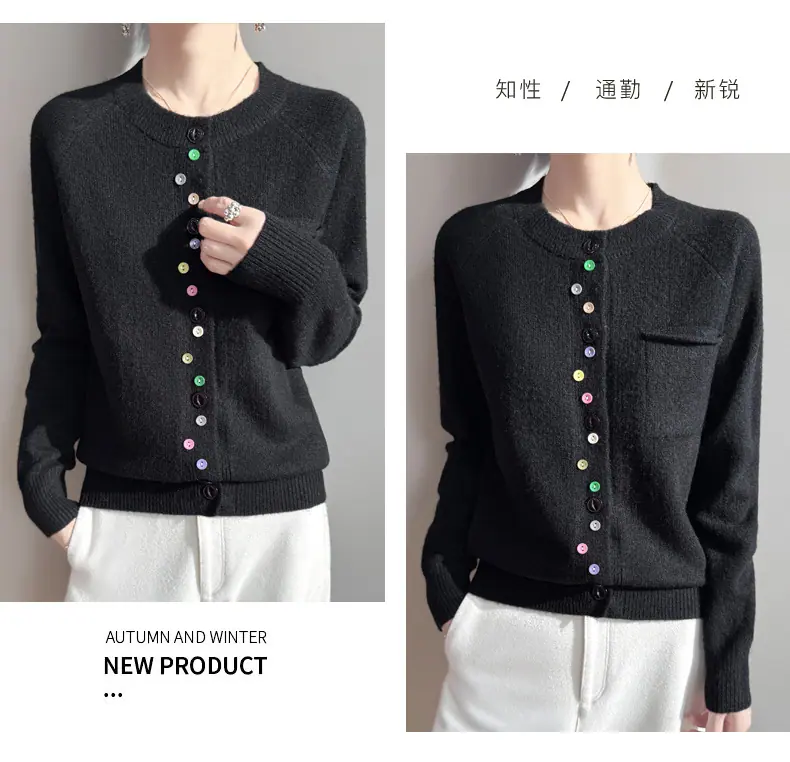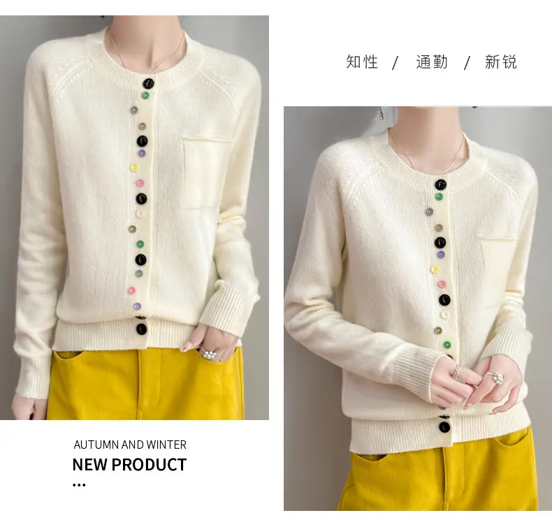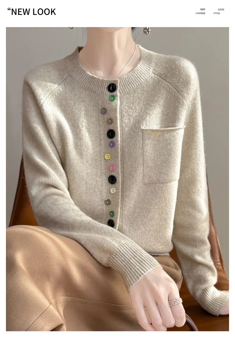 Cárdigan de Lana para Mujer con Botones Coloridos A prueba de Viento y Cálido Suelto y Adelgazante Otoño e Invierno Casual Lazy Ropa Exterior