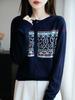 Nuevo Cardigan de Punto Retro de Lana Peinada Cuello Redondo de Manga Larga para Mujer Jacquard Holgado y Versátil