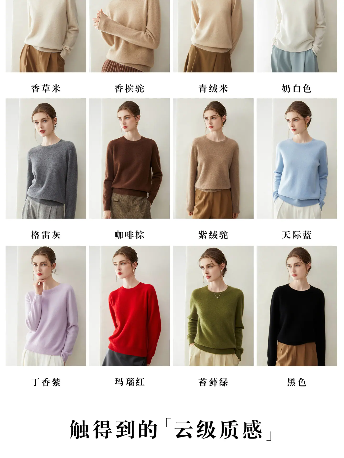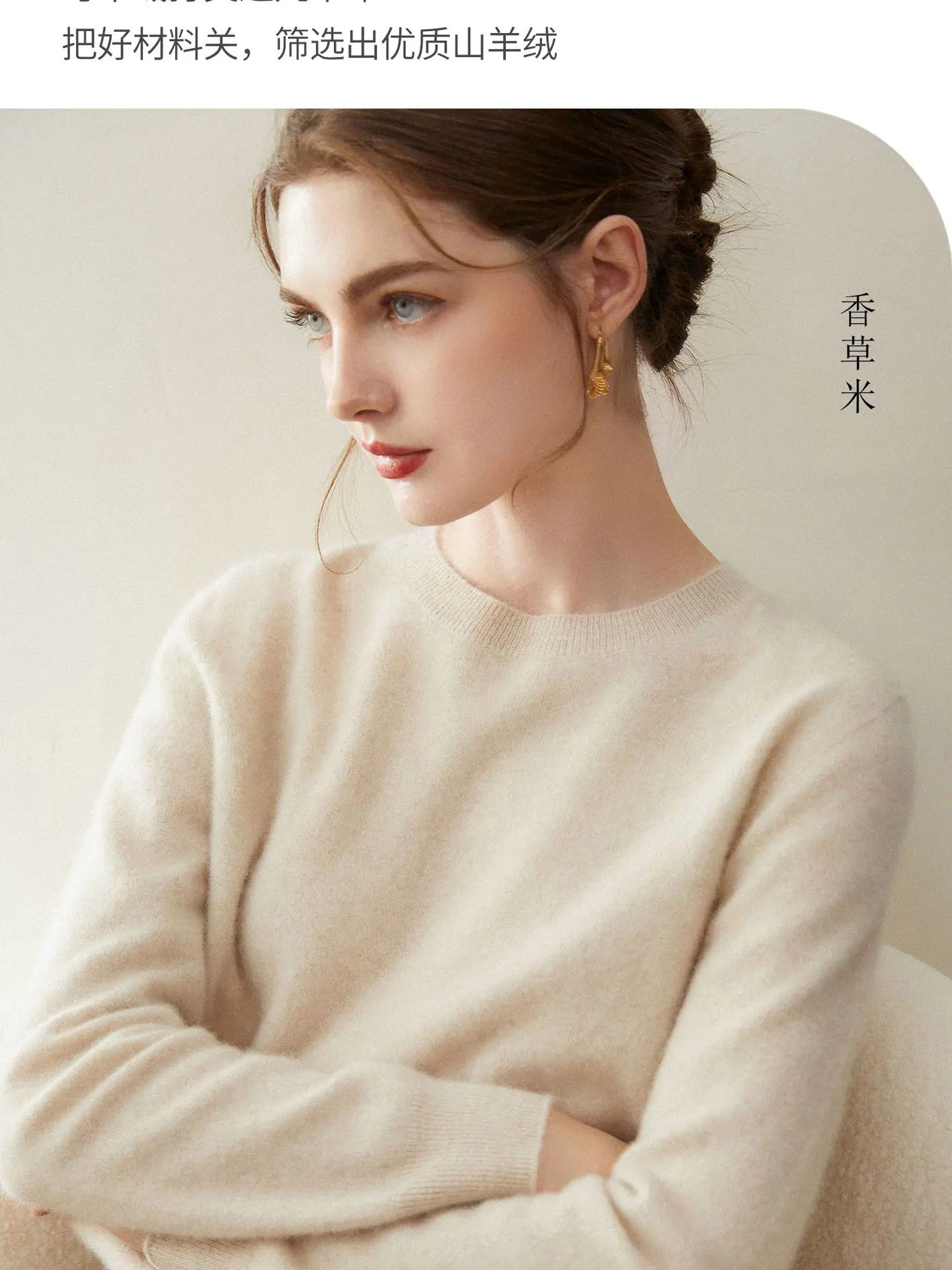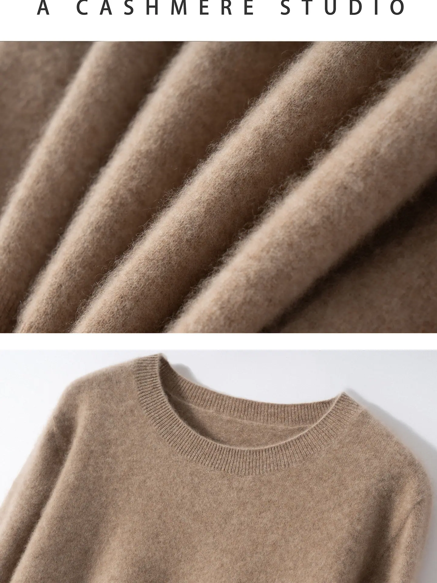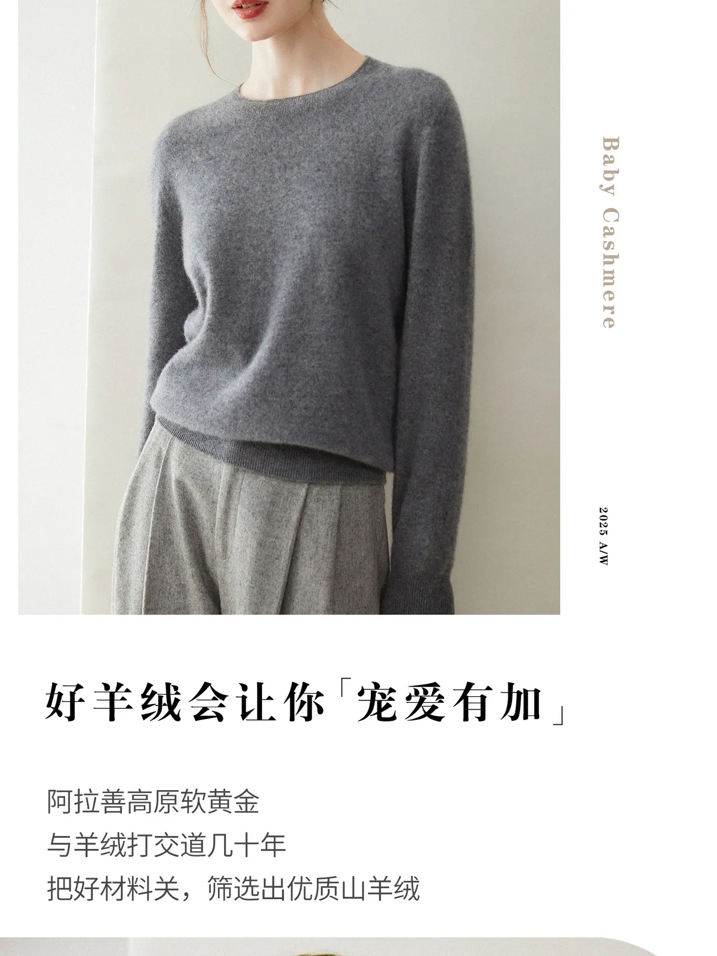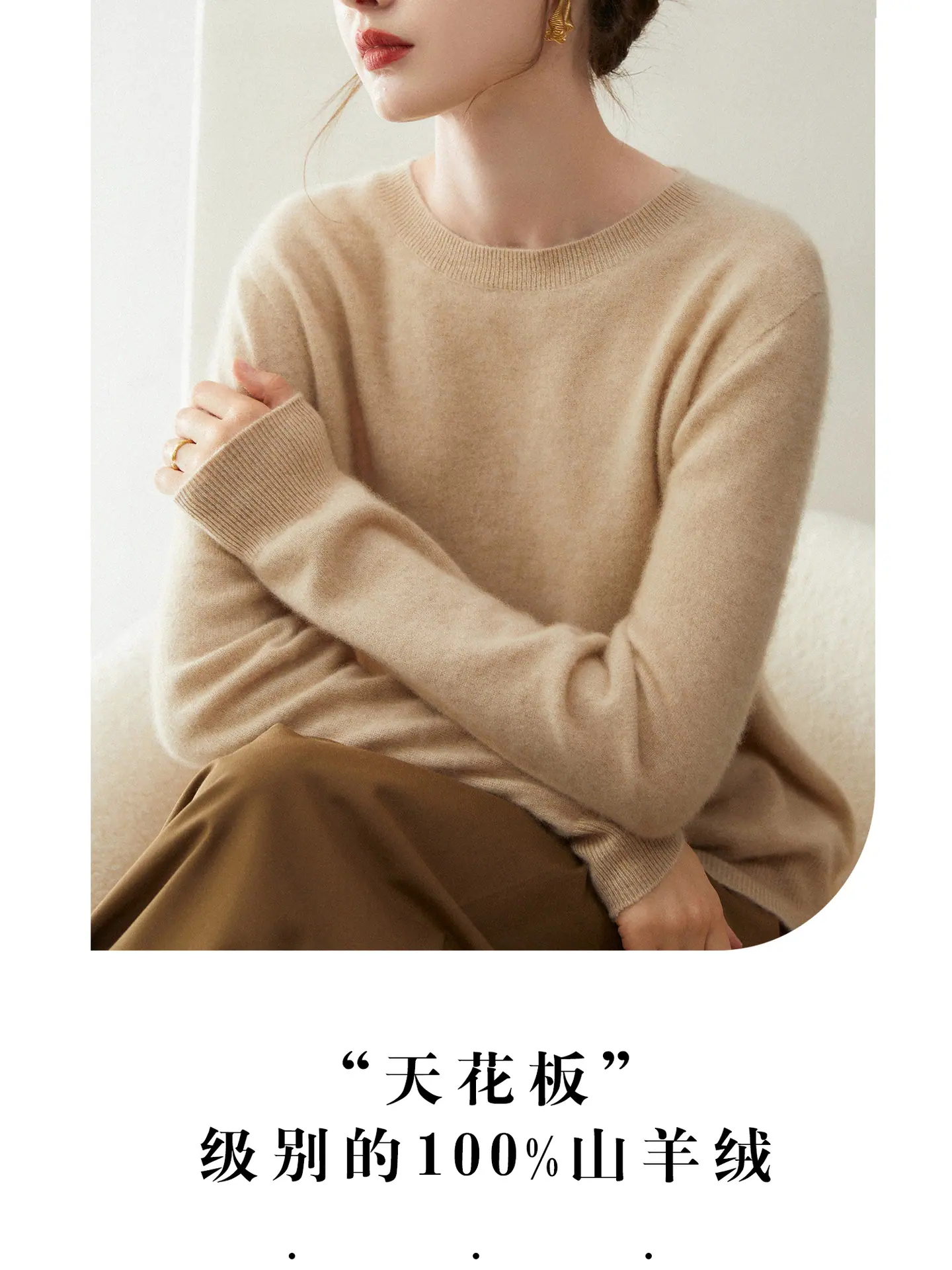 Otoño/Invierno 2025 Nuevo Suéter de Cuello Redondo 100% Cachemira Pura para Mujer Top Holgado Capa Interior Tejido de Punto Básico