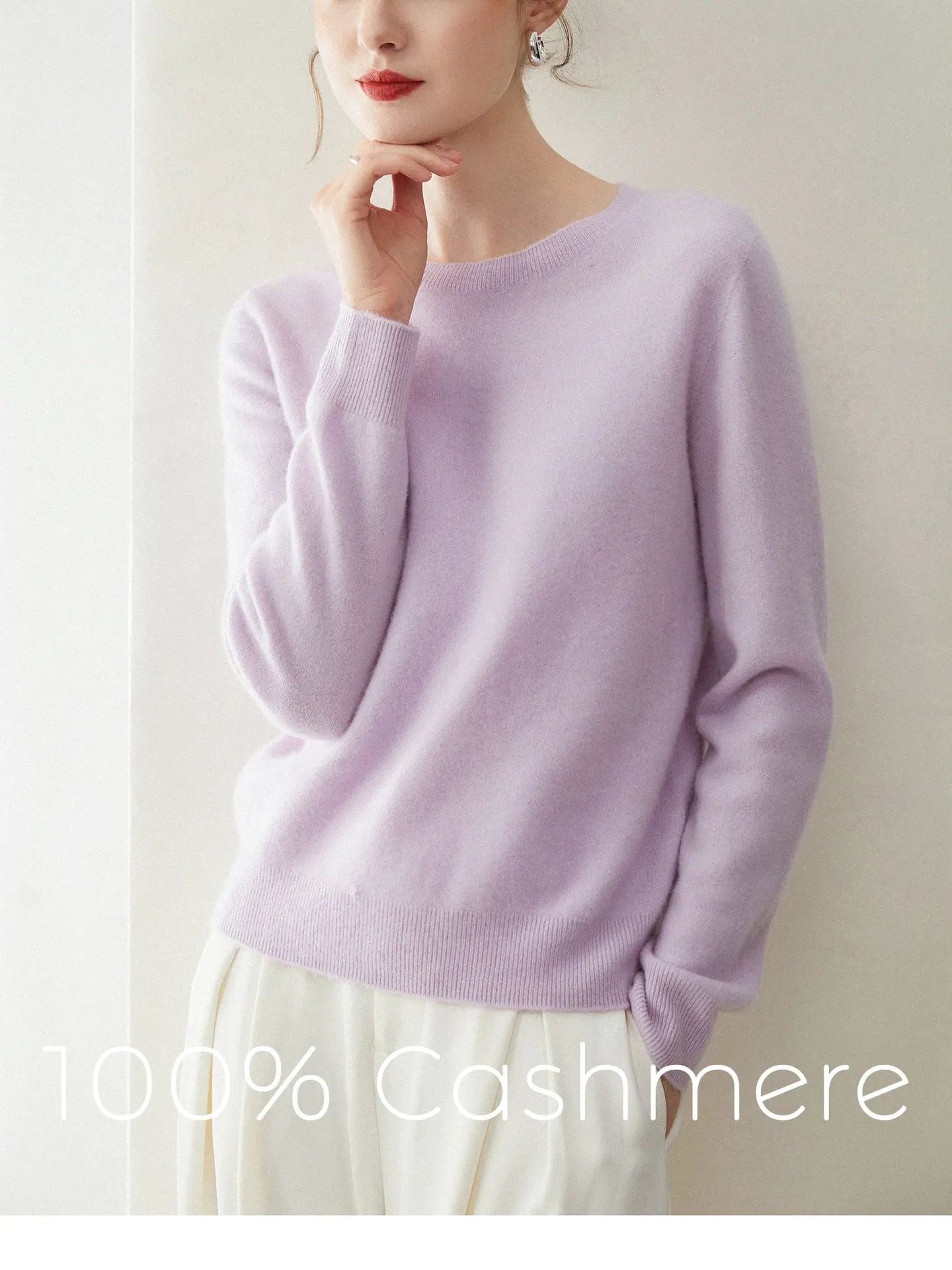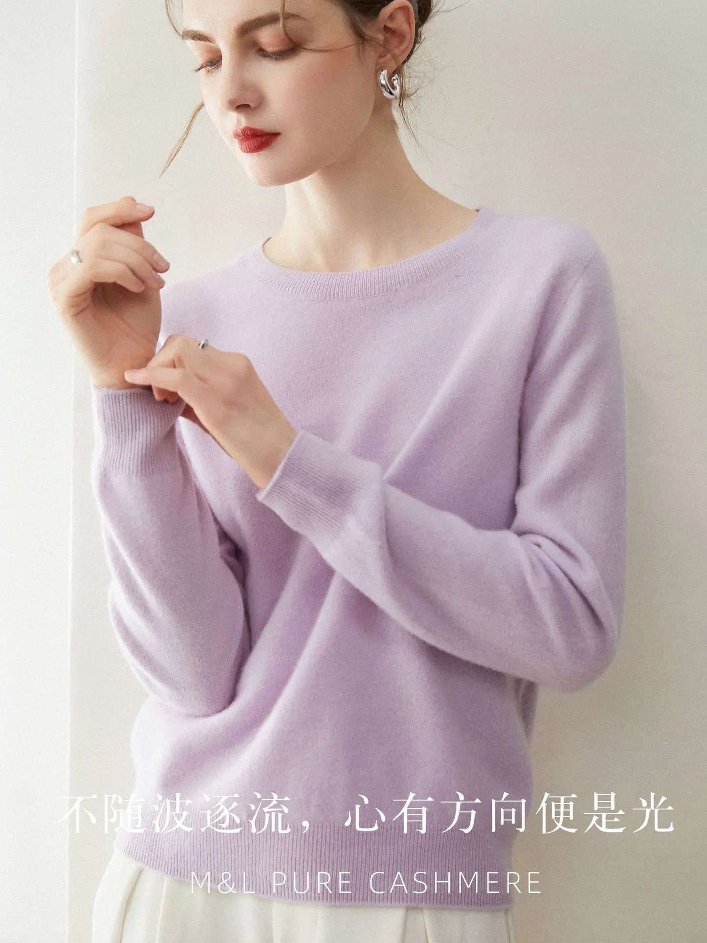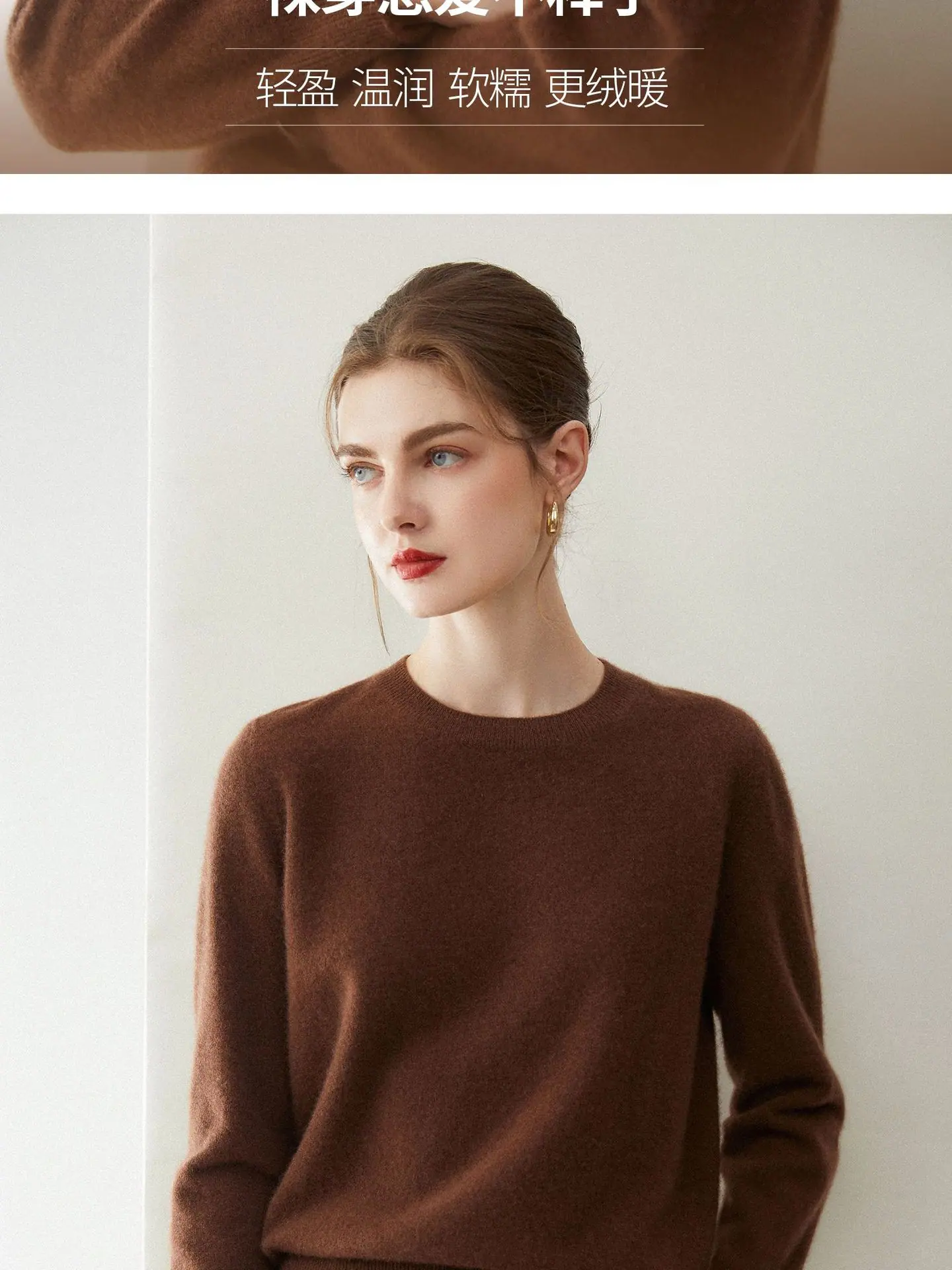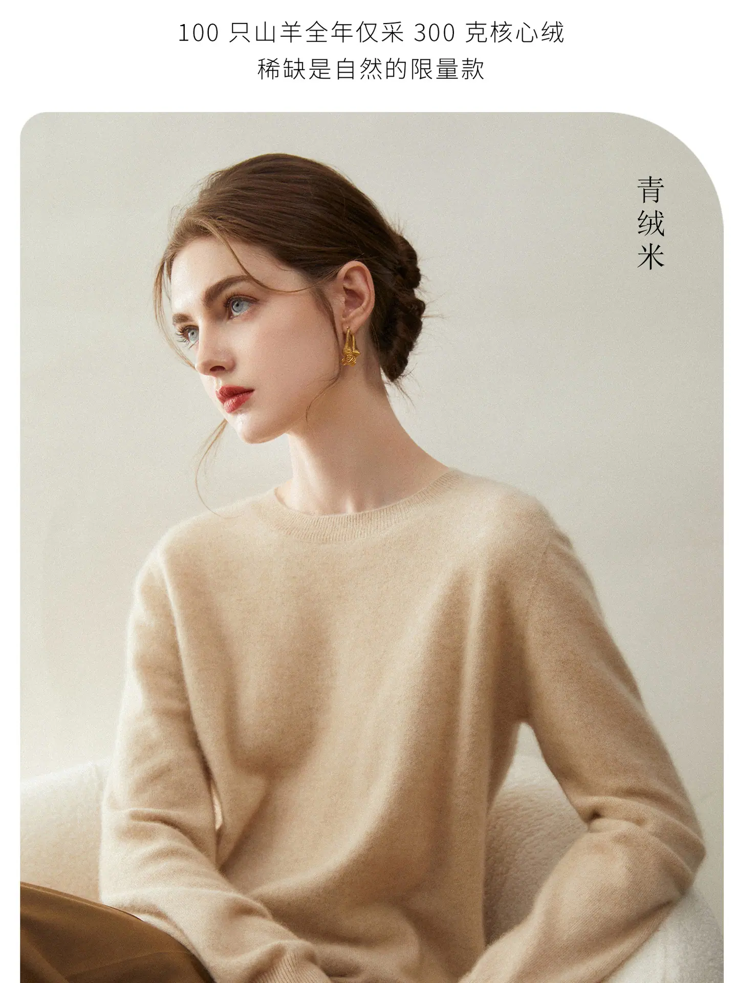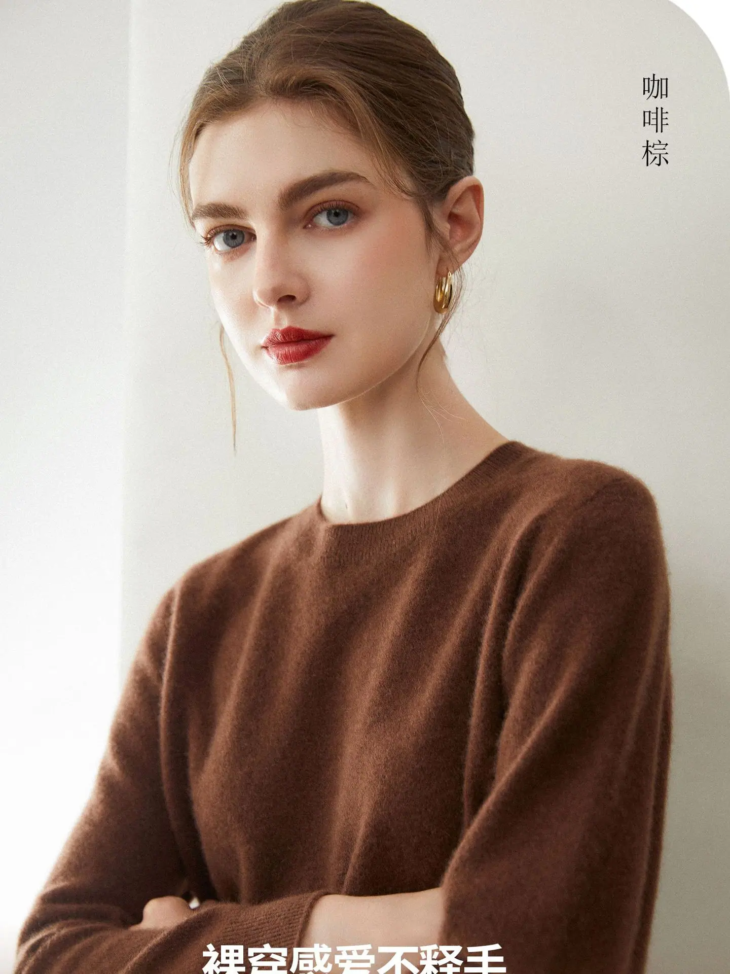 Otoño/Invierno 2025 Nuevo Suéter de Cuello Redondo 100% Cachemira Pura para Mujer Top Holgado Capa Interior Tejido de Punto Básico