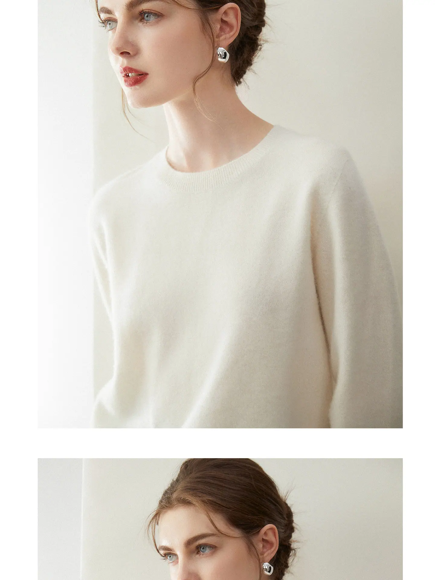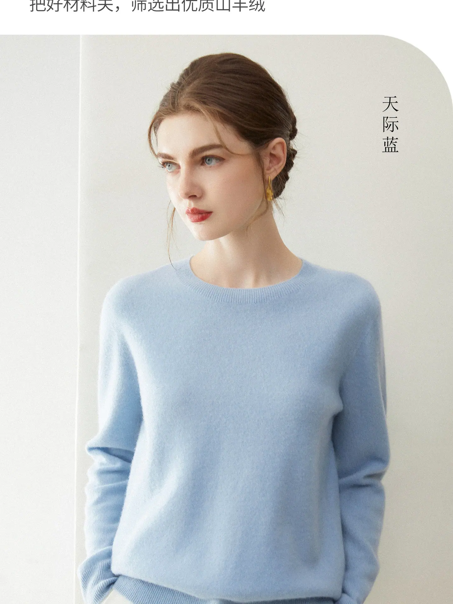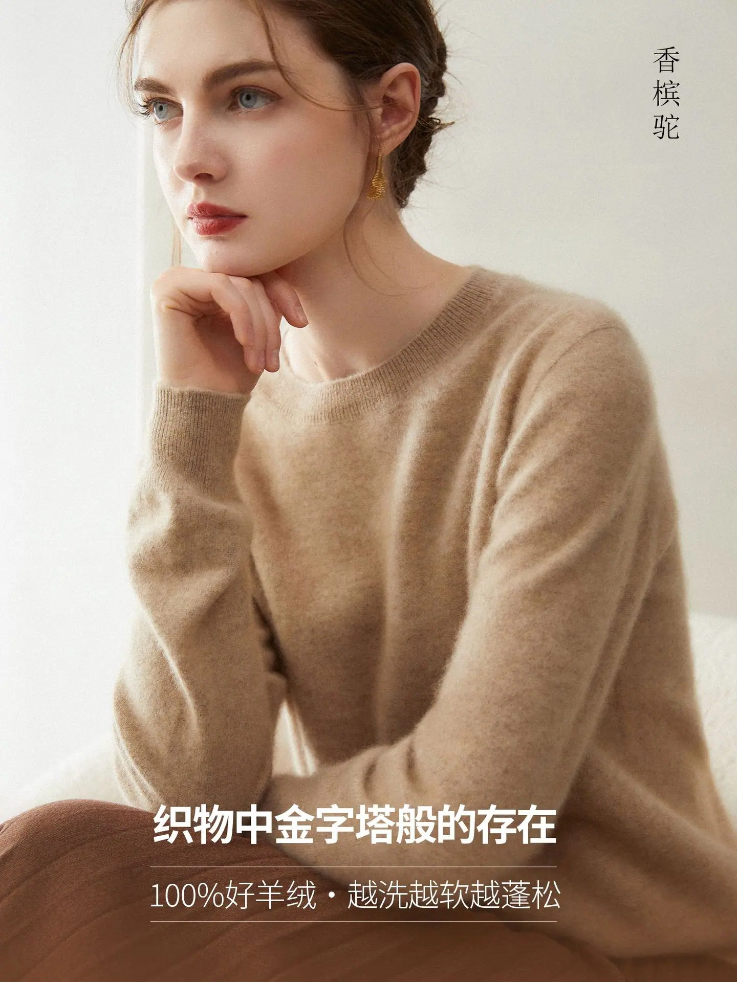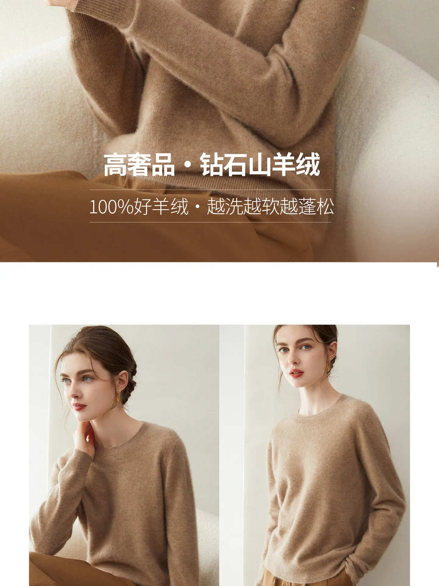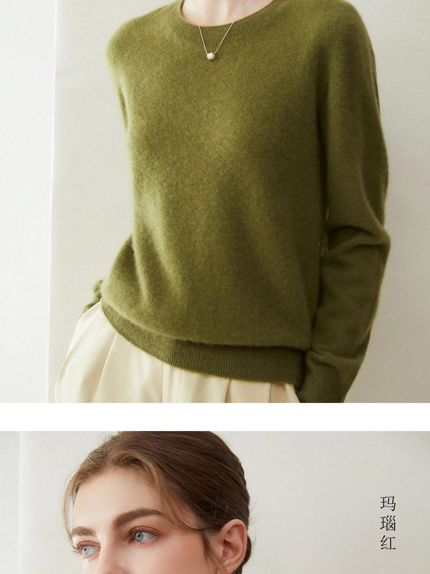 Otoño/Invierno 2025 Nuevo Suéter de Cuello Redondo 100% Cachemira Pura para Mujer Top Holgado Capa Interior Tejido de Punto Básico