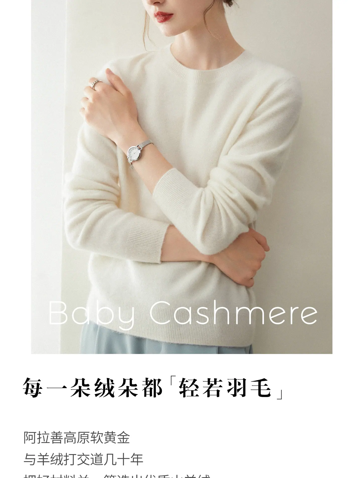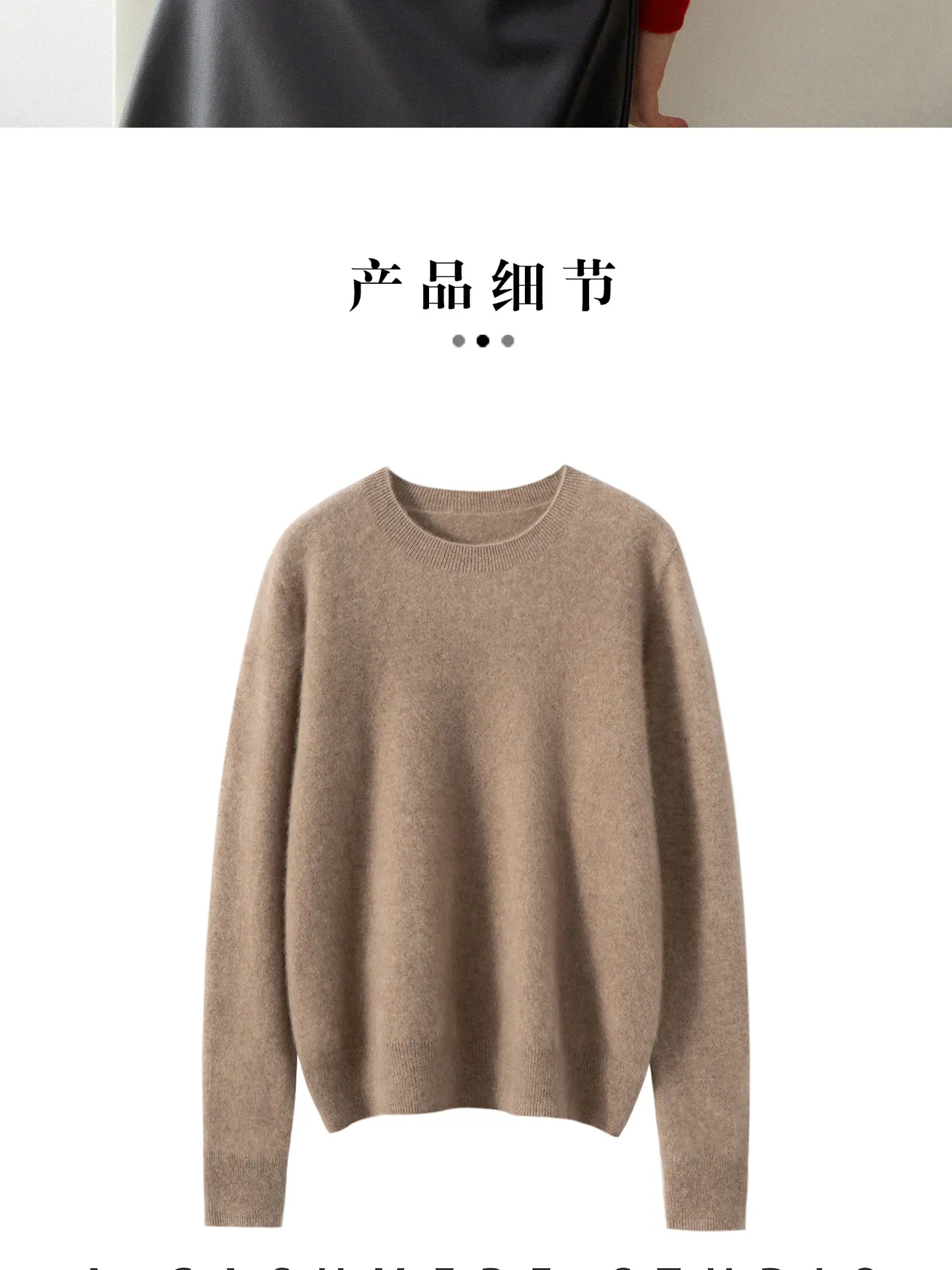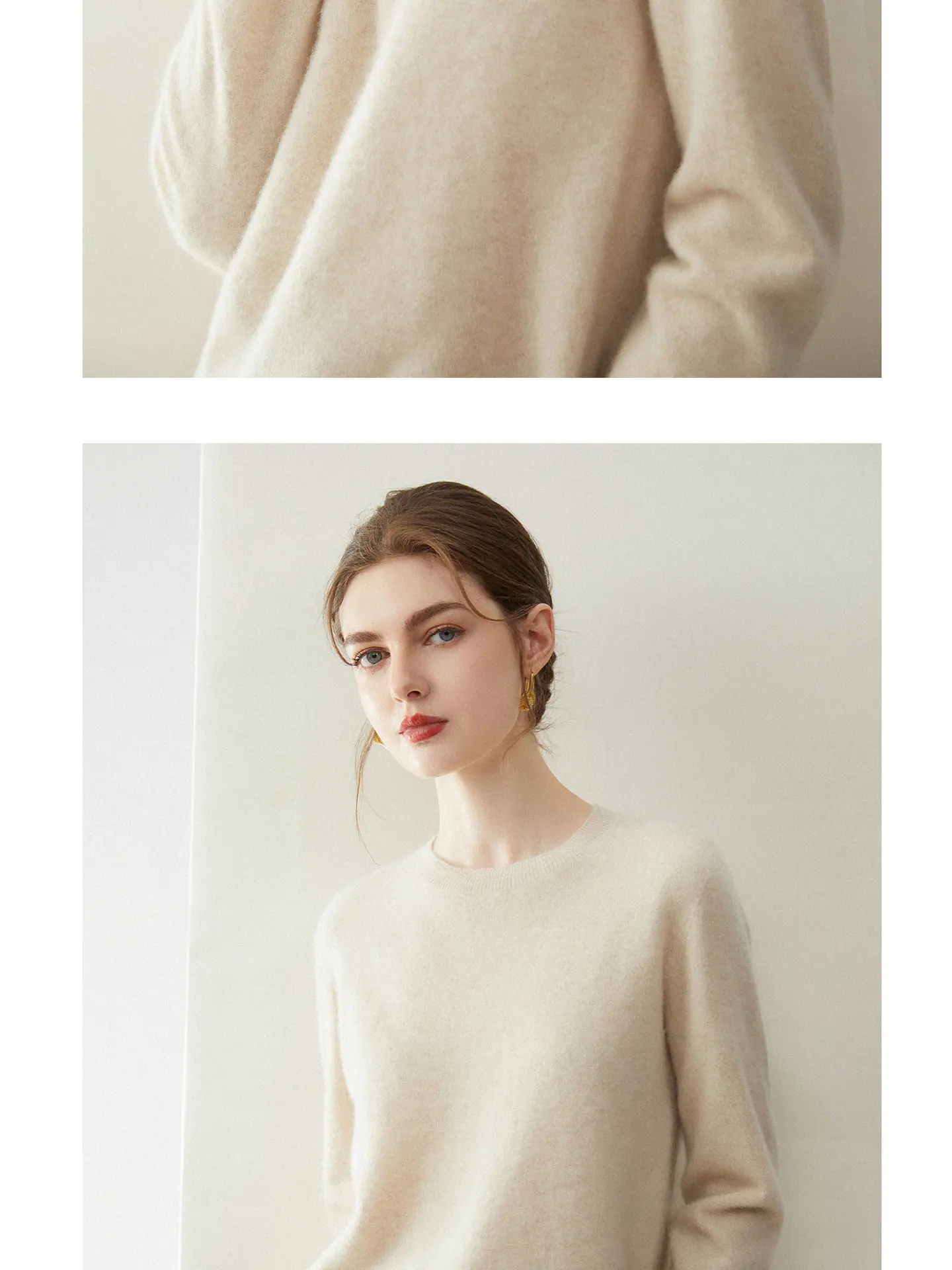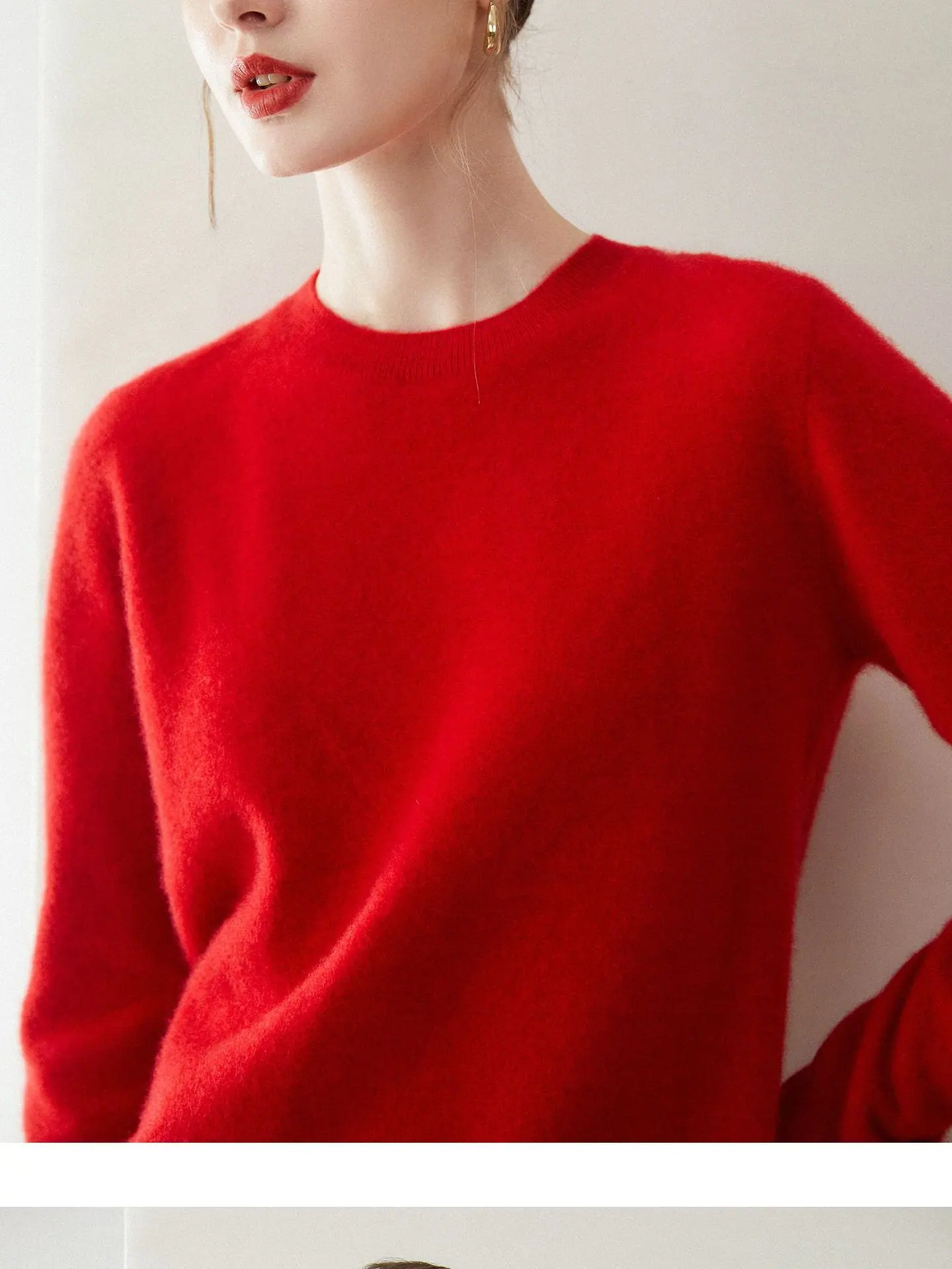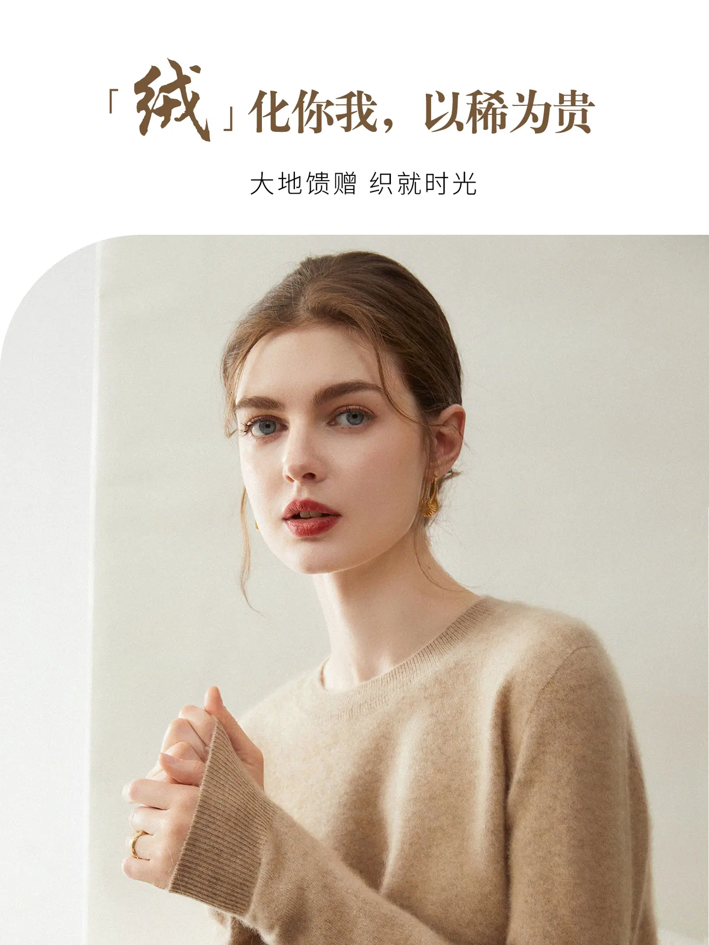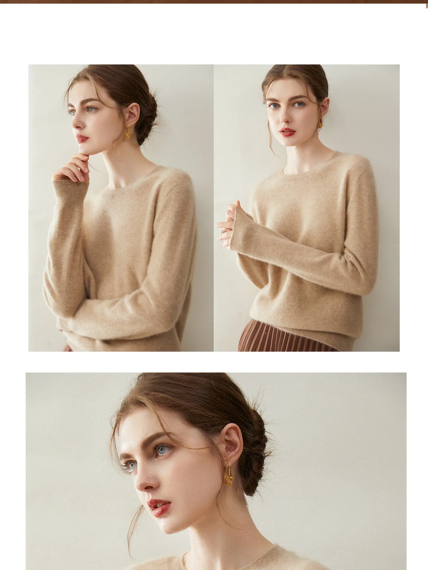 Otoño/Invierno 2025 Nuevo Suéter de Cuello Redondo 100% Cachemira Pura para Mujer Top Holgado Capa Interior Tejido de Punto Básico