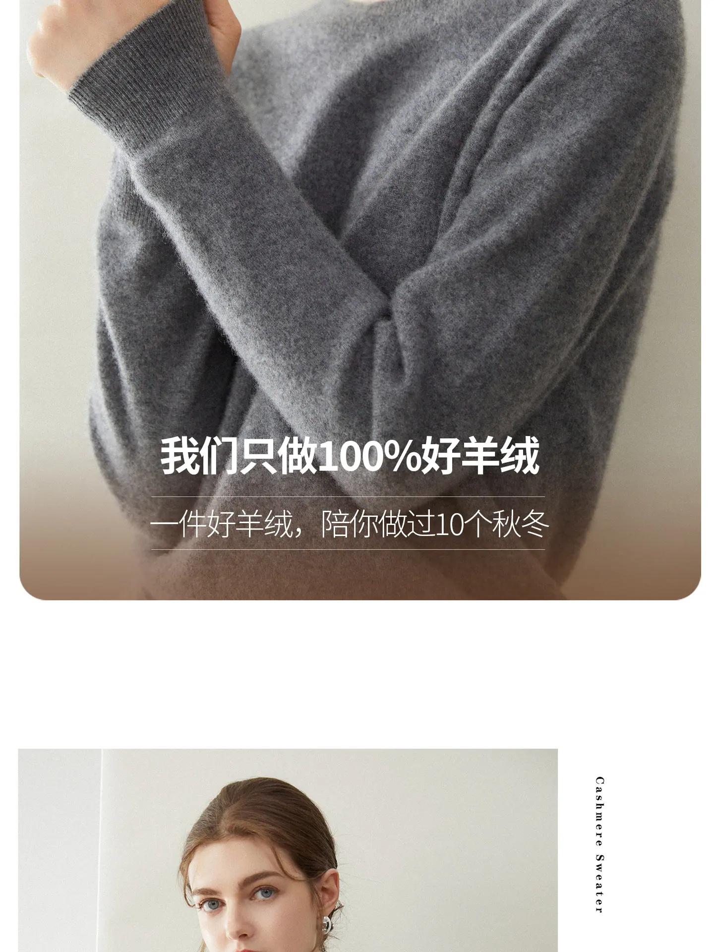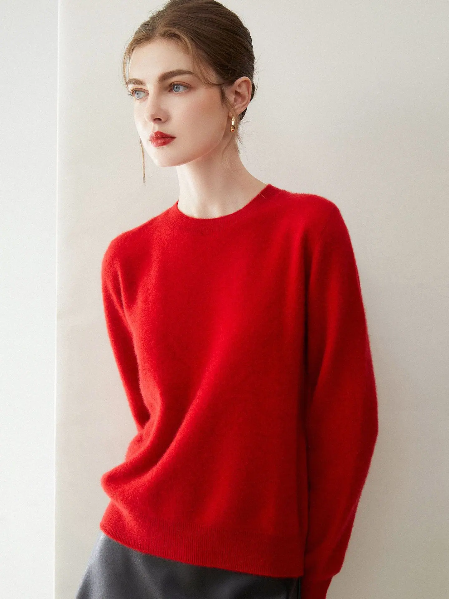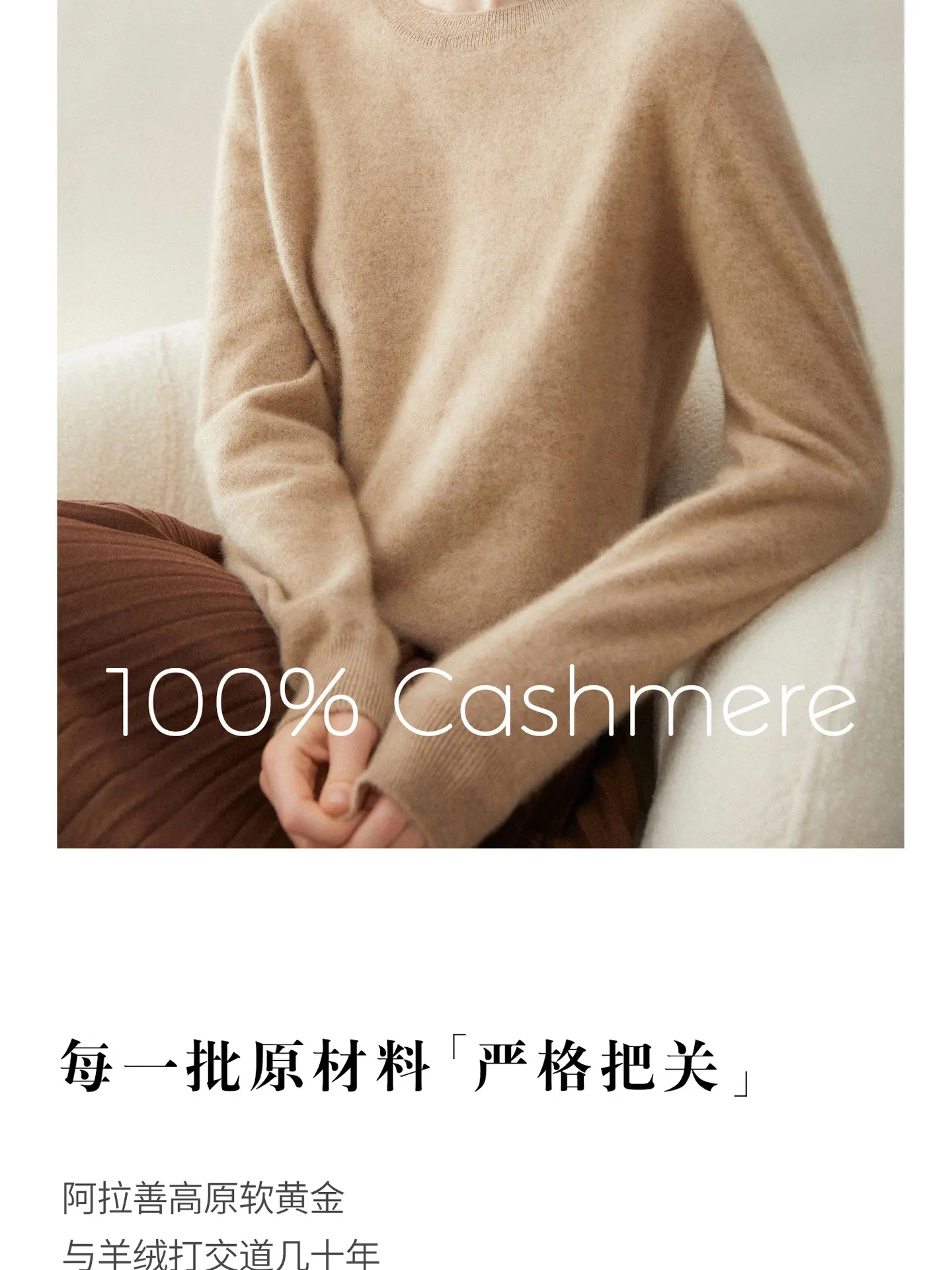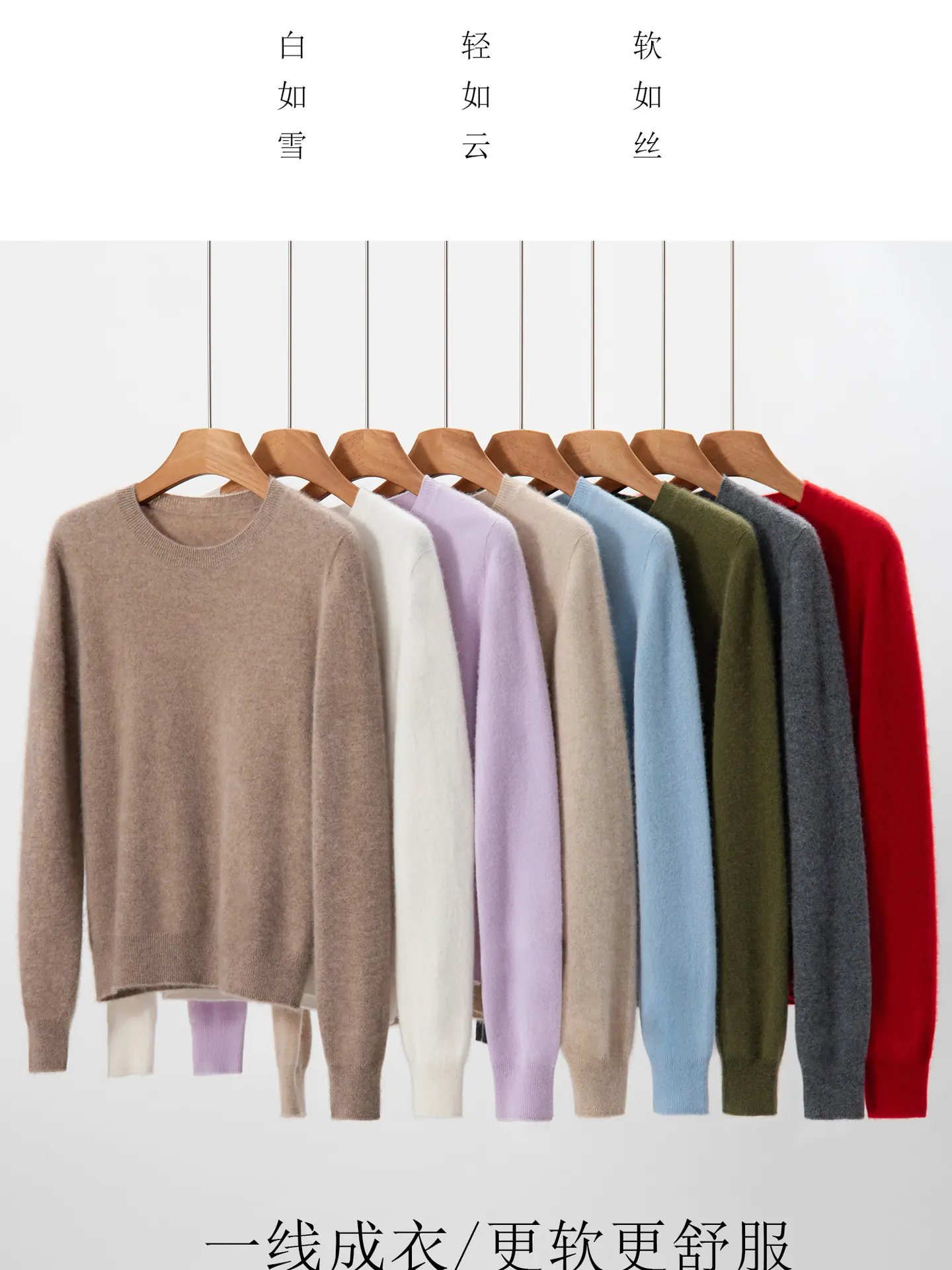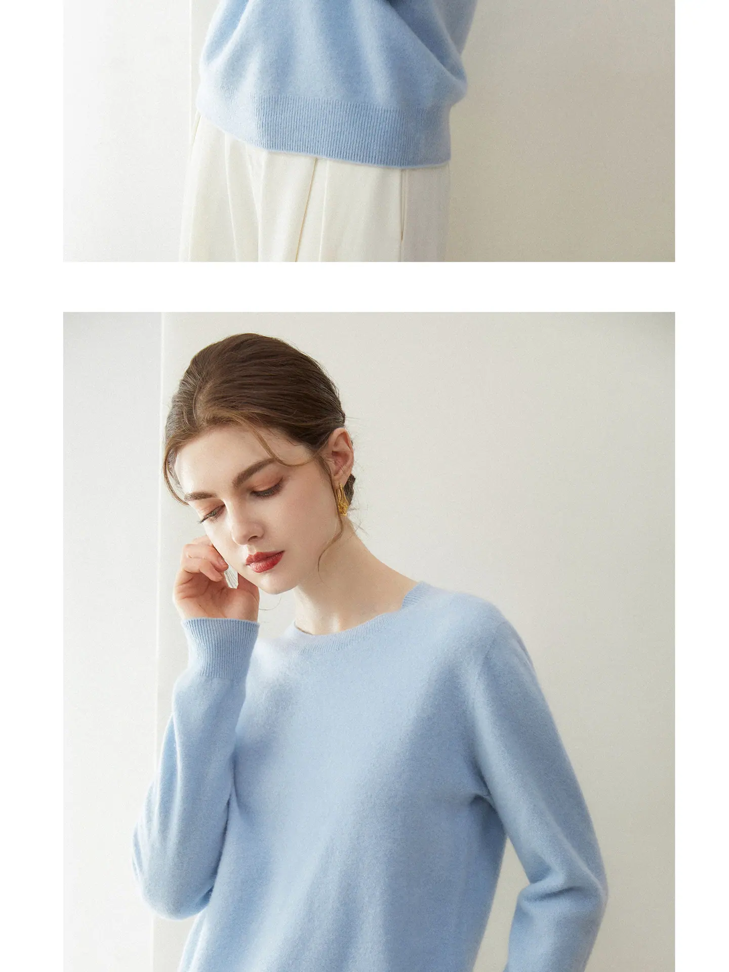 Otoño/Invierno 2025 Nuevo Suéter de Cuello Redondo 100% Cachemira Pura para Mujer Top Holgado Capa Interior Tejido de Punto Básico