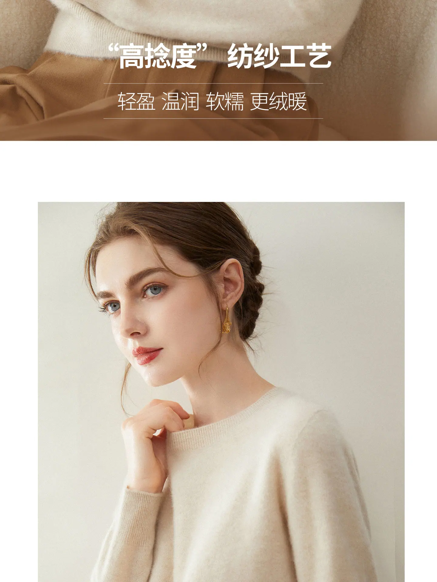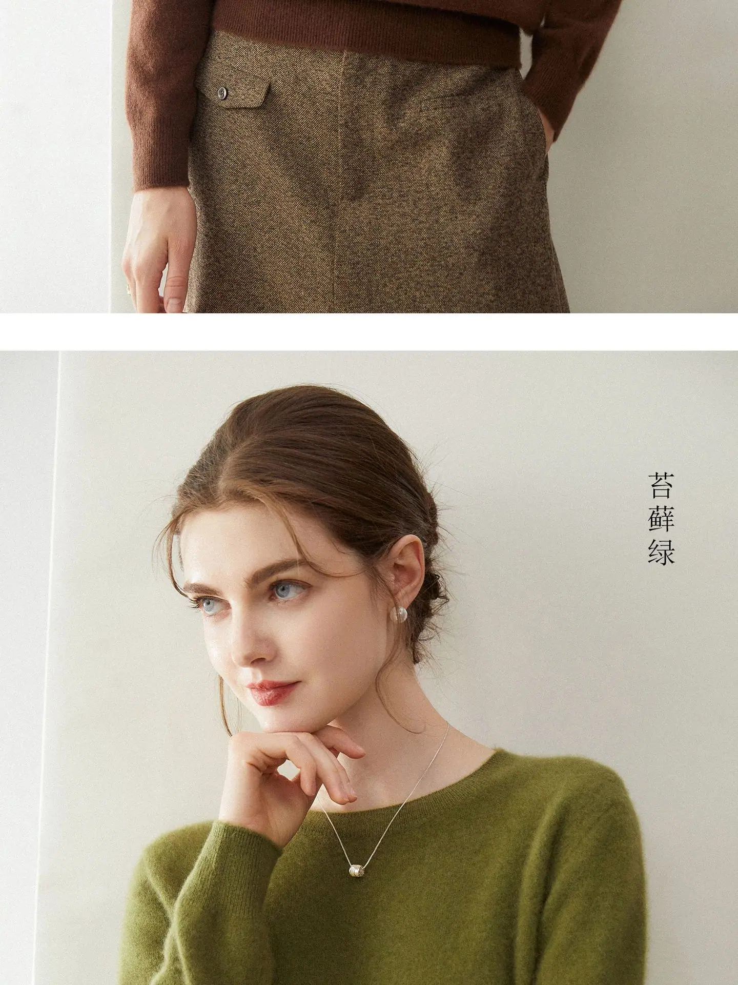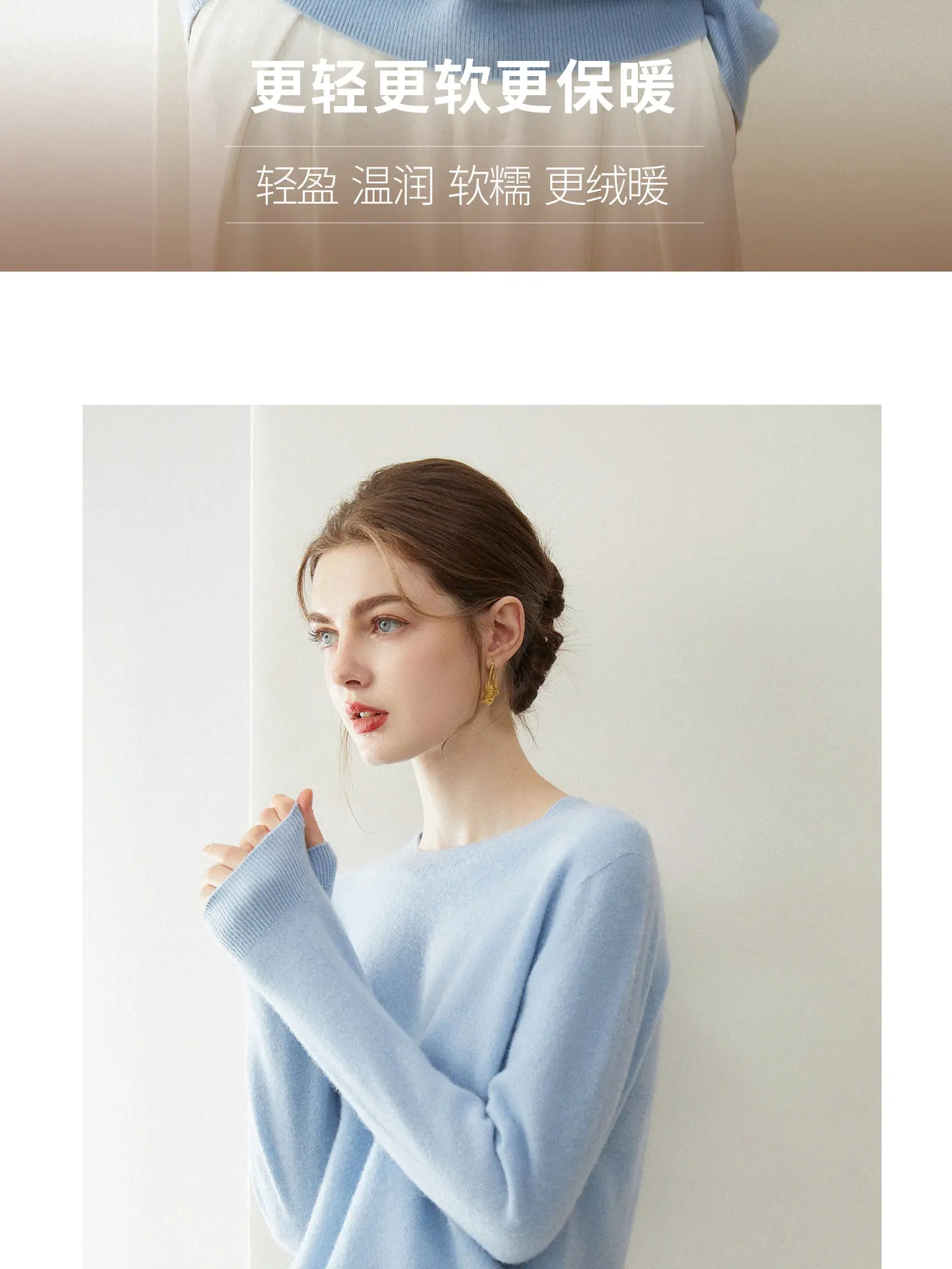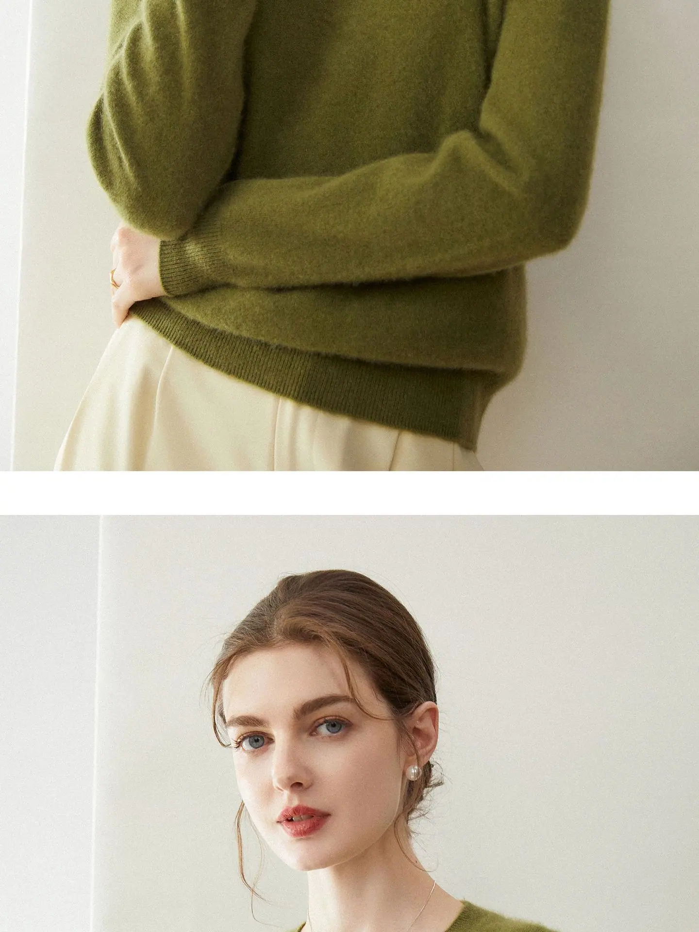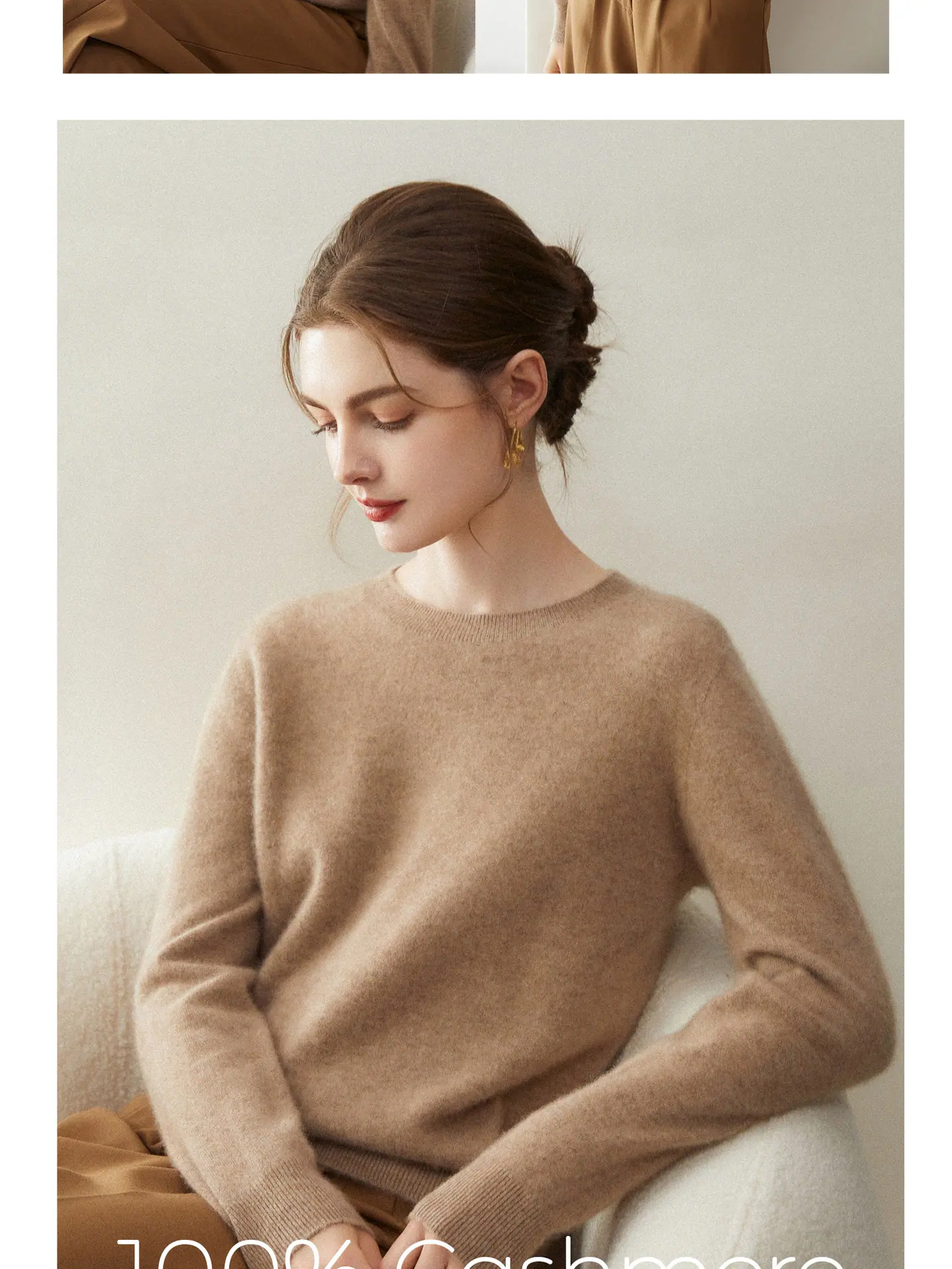 Otoño/Invierno 2025 Nuevo Suéter de Cuello Redondo 100% Cachemira Pura para Mujer Top Holgado Capa Interior Tejido de Punto Básico