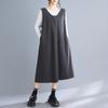 Vestido Chaleco de Twill Grueso de Nuevo Estilo Otoño e Invierno, Largo Medio, Diseño de Cuello en V, de Doble Uso
