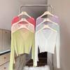 Cárdigan Corto Tejido Protector Solar de Seda de Hielo Azul para Mujer Verano 2025 Cuello en V Camisa para Aire Acondicionado Chal Fino Camisa