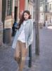 25 Chaqueta de Mezclilla Moda Retro Estilo Hong Kong para Mujer Otoño Estilo Perezoso Manga Larga de Longitud Media Top Holgado para Mujer