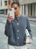 Suéter Cárdigan Elegante de Punto de Cuello Redondo de Nueva Colección Transfronterizo para Mujer, Holgado, Color Sólido, Chaqueta de Punto, Top Versátil para Mujer