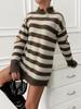 Suéter de Rayas Estilo Perezoso Nuevo Estilo Primavera y Verano 2026 Europeo y Americano, Suéter Grueso de Punto de Rayas de Alta Gama y Suave para Mujer