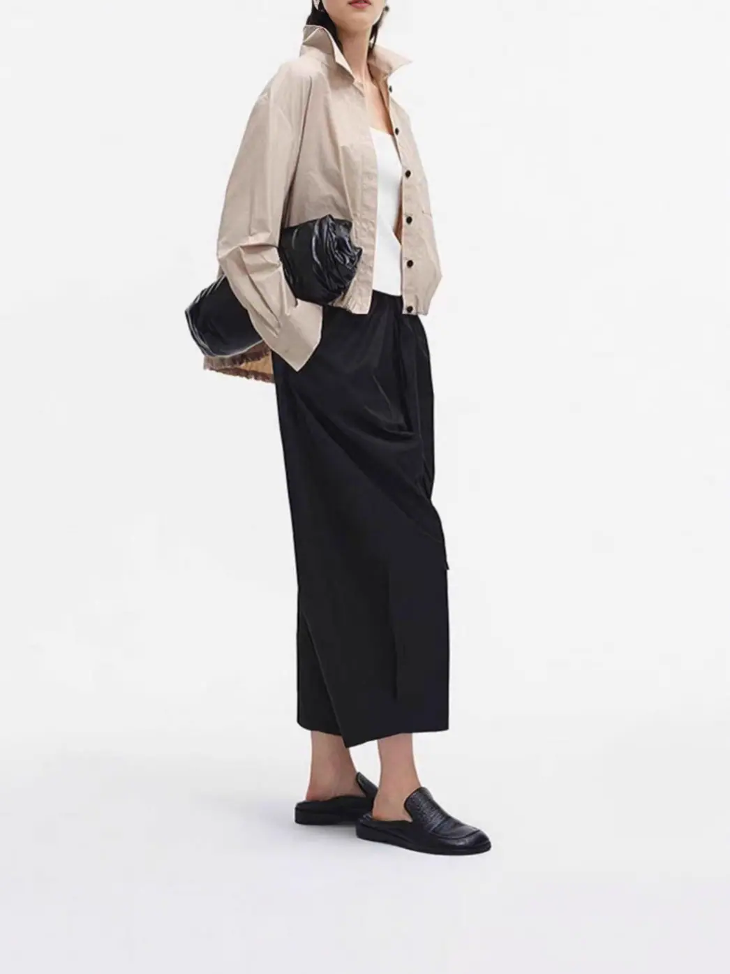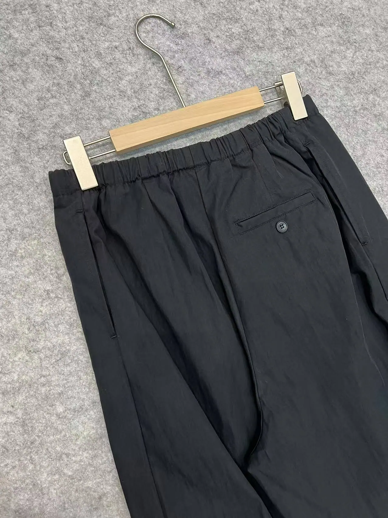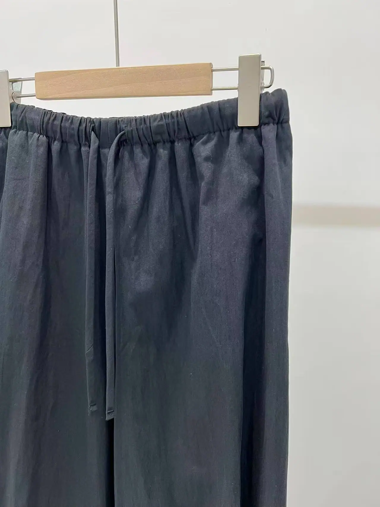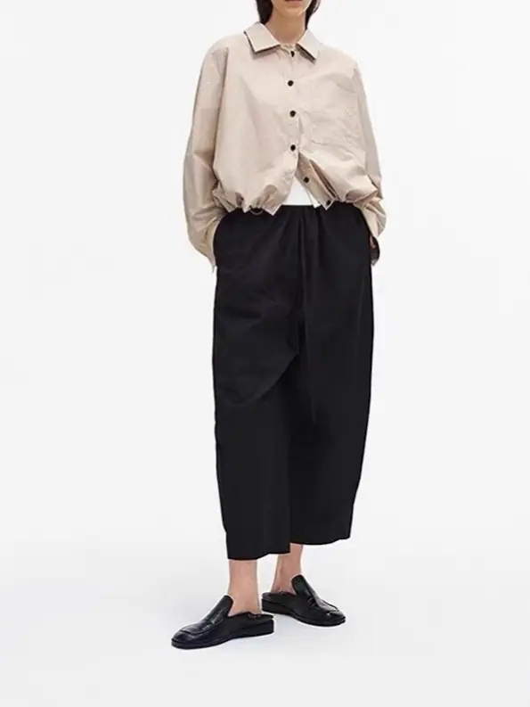 Cintura elástica, con finos pliegues para que el pantalón luzca más relajado