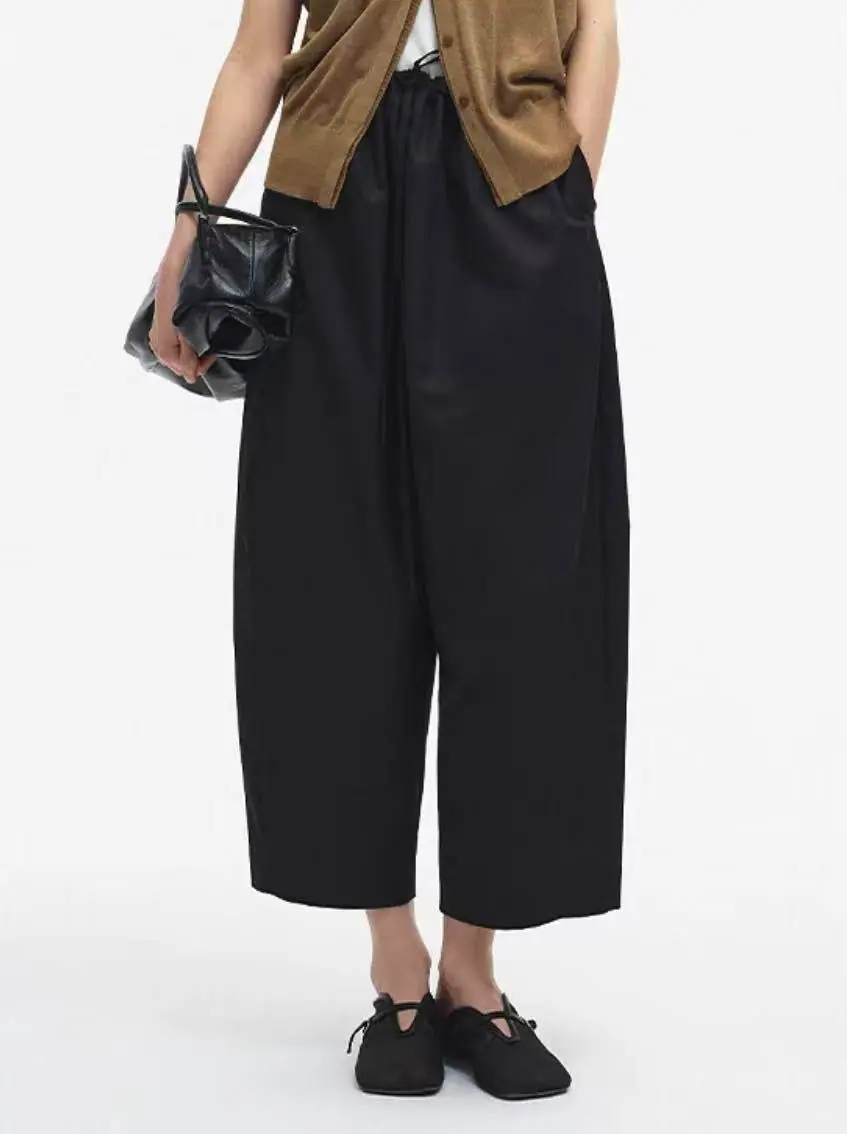 ¡Pequeño secreto adelgazante! Pantalones capri holgados versátiles MS Simple Commuting con hebilla drapeada