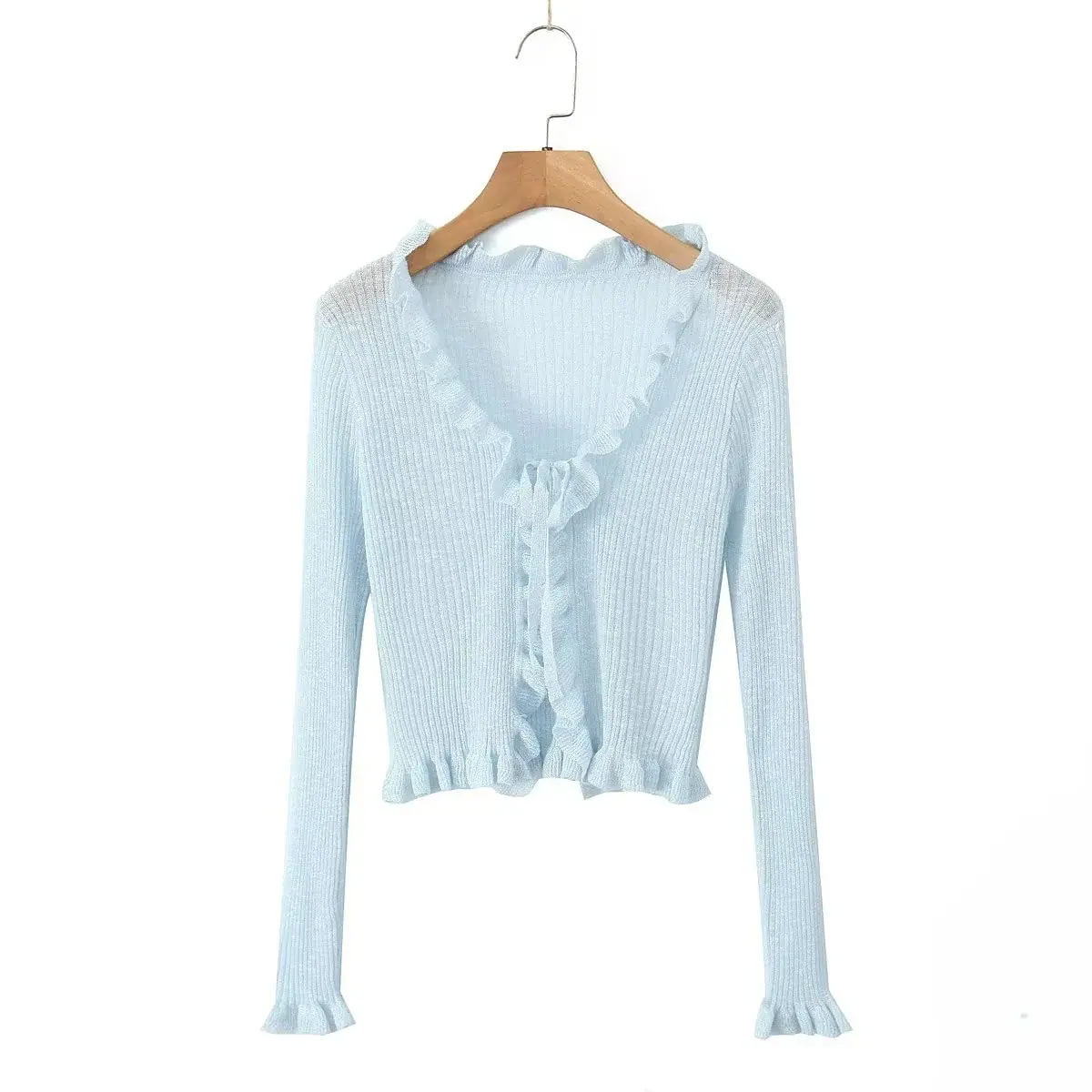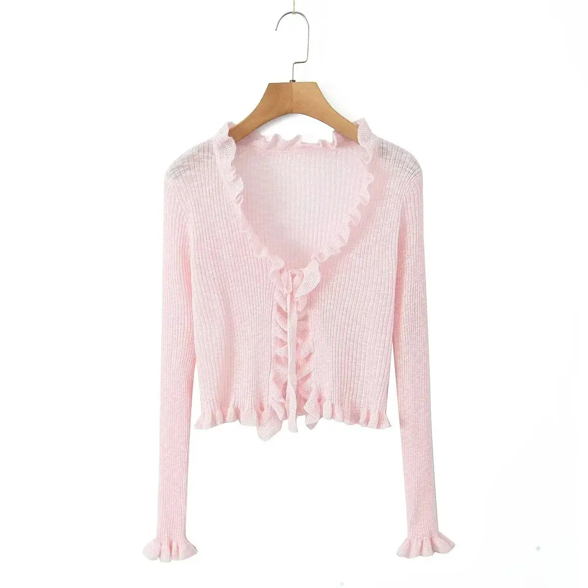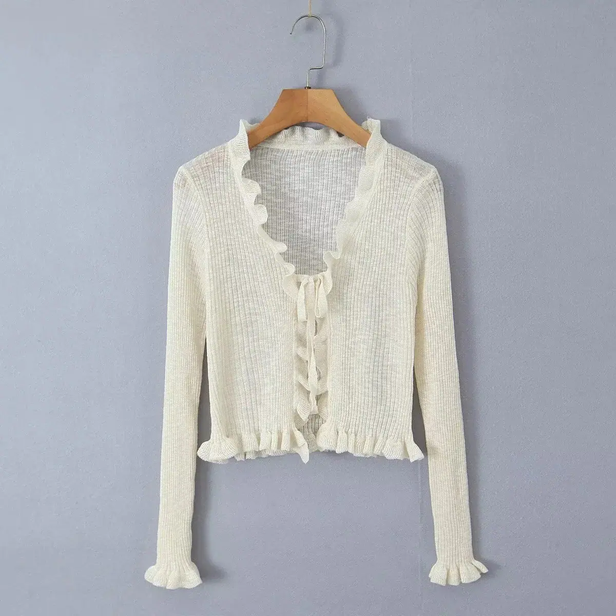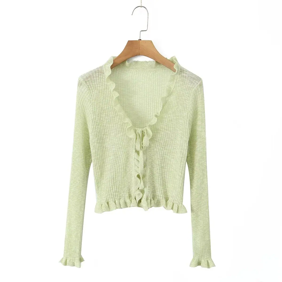 Ropa de Mujer al por Mayor Comercio Exterior Transfronterizo Otoño 2025 Estilo Europeo y Americano Chaqueta Corta con Volantes y Lazo para Mujer D79290F