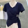 Compra Camiseta de Manga Corta para Mujer en Verano Estilo Nuevo Dulce Sexy Cuello en V Bordado de Letras Diseño de Tirantes en la Cintura Aspecto Adelgazante Chic Top al por mayor en Joom.pro