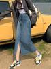 Falda de mezclilla con abertura de cintura alta para mujer 2025 Nueva falda de verano de largo medio Falda acampanada Falda pequeña que cubre los glúteos