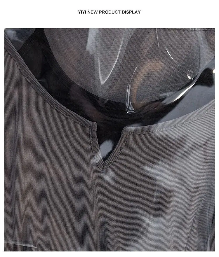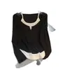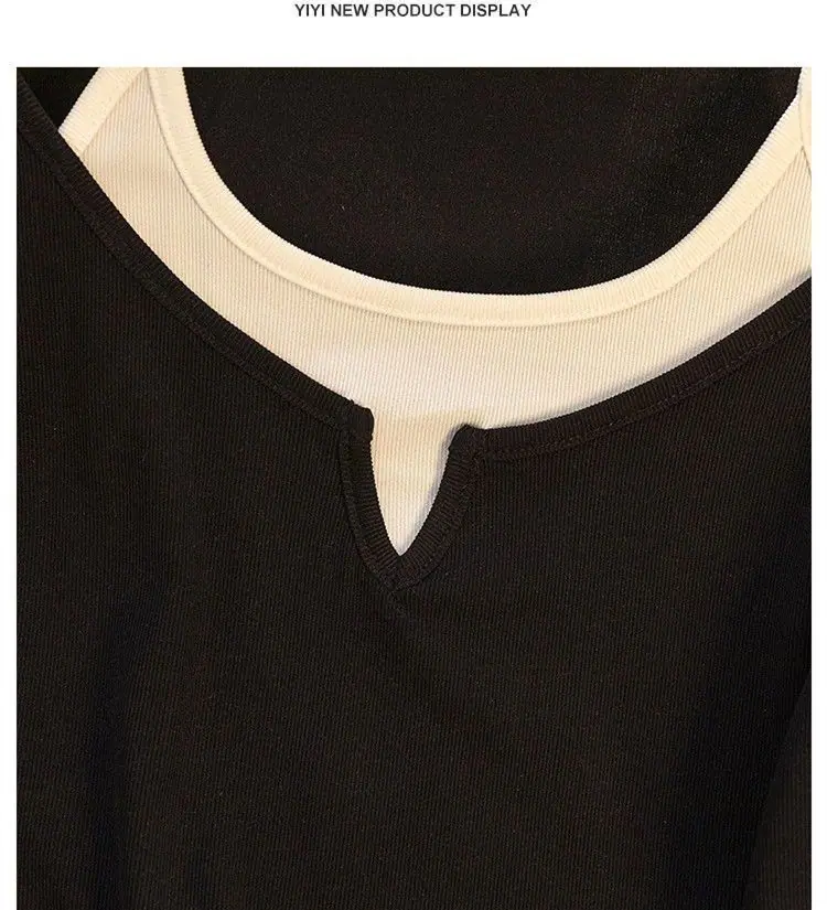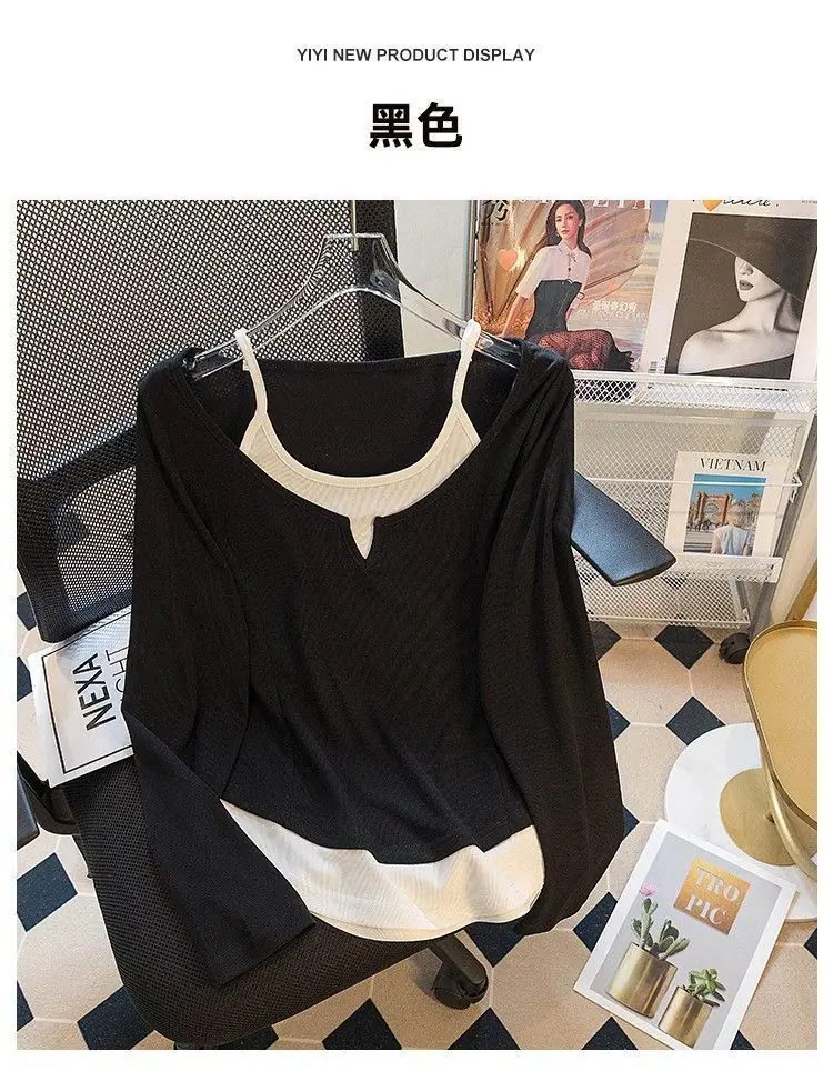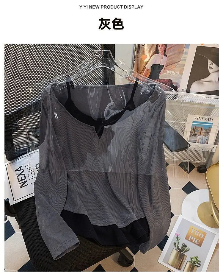 Top de Capa Interior de Manga Larga Color Carne para Mujer Talla Grande Mujer 2025 Moda Primavera y Otoño Estilo Extranjero Moderno Reductor de Edad Camiseta de Hombro Recto