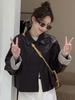 Otoño 2025 Nueva Chaqueta de Cuero Patchwork Retro de Alta Calidad Tops Cortos Estilo Moda Coreana para Mujer Tops Top