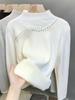 Camiseta Básica de Cuello Alto Negro para Otoño e Invierno para Mujer Nueva Ajustada Versátil de Manga Larga Suéter de Punto Interior Superior Moderno