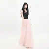 Compra Culottes de Gasa Holgados de Verano de Cintura Alta, Pantalones Elegantes Rosas de Pierna Ancha para Mujer, Cintura Elástica Texturizada y Pantalones Elegantes al por mayor en Joom.pro