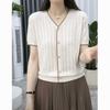 Jersey de Punto de Seda con Cuello en V Camiseta de Manga Corta para Mujer 2024 Verano Nuevo Ropa de Madre Corte Holgado Estilo Delgado con Aberturas