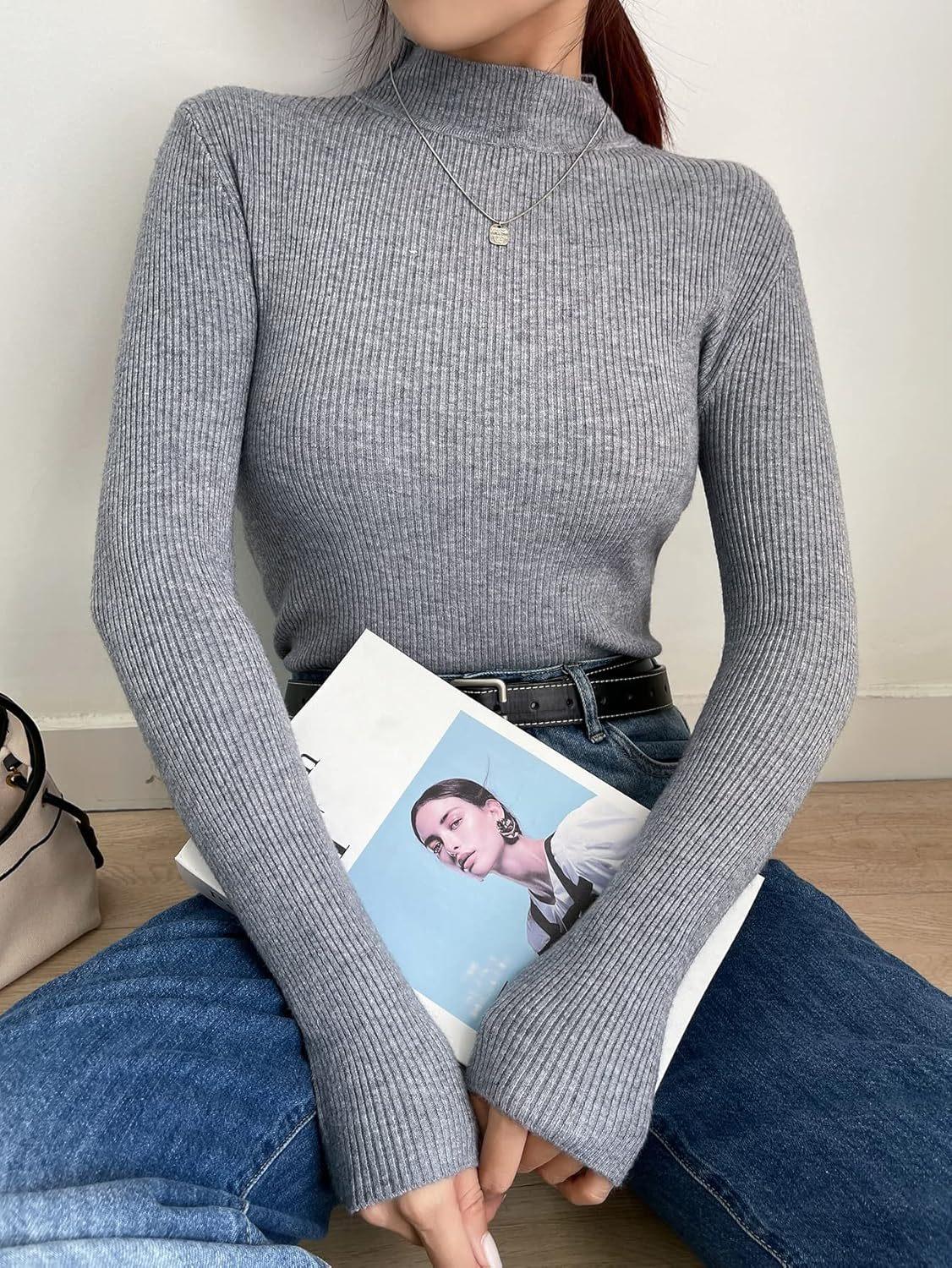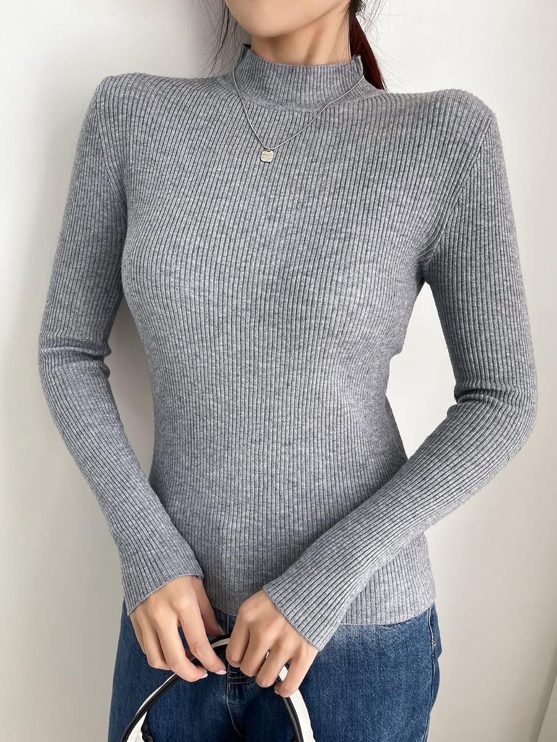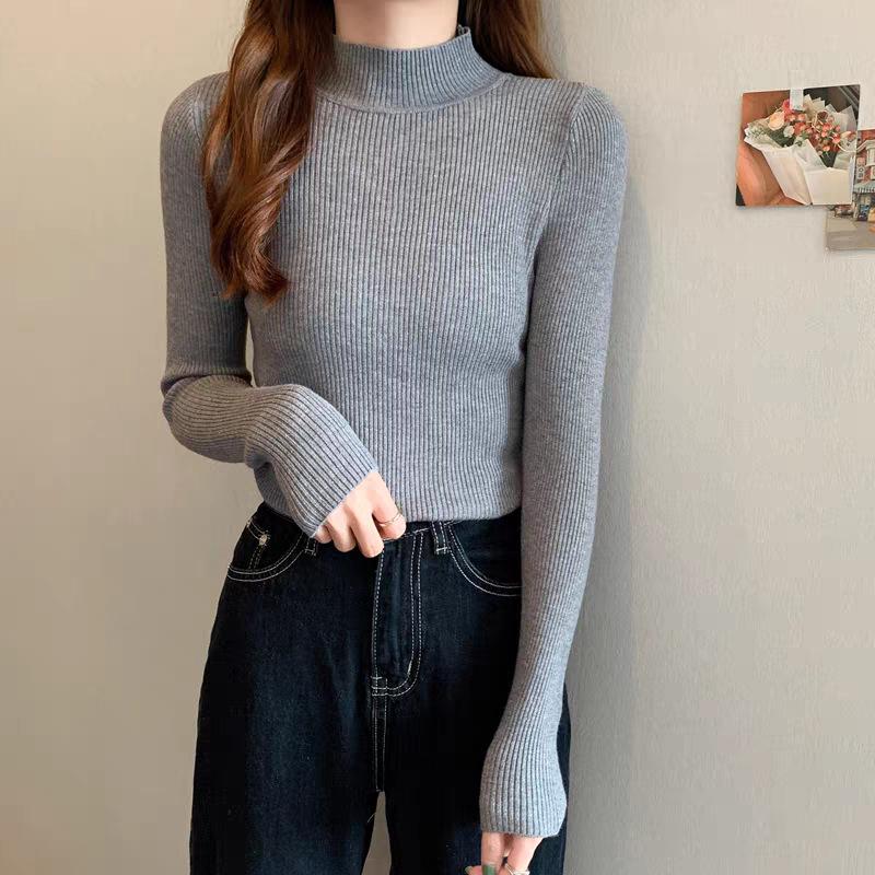 Compra Camiseta básica de cuello medio alto para mujer Otoño Invierno 2025 Nuevo estilo Suéter Manga larga Ajuste ceñido Cuello medio Camisa de punto Ropa interior para ir al trabajo Color sólido al por mayor en Joom.pro