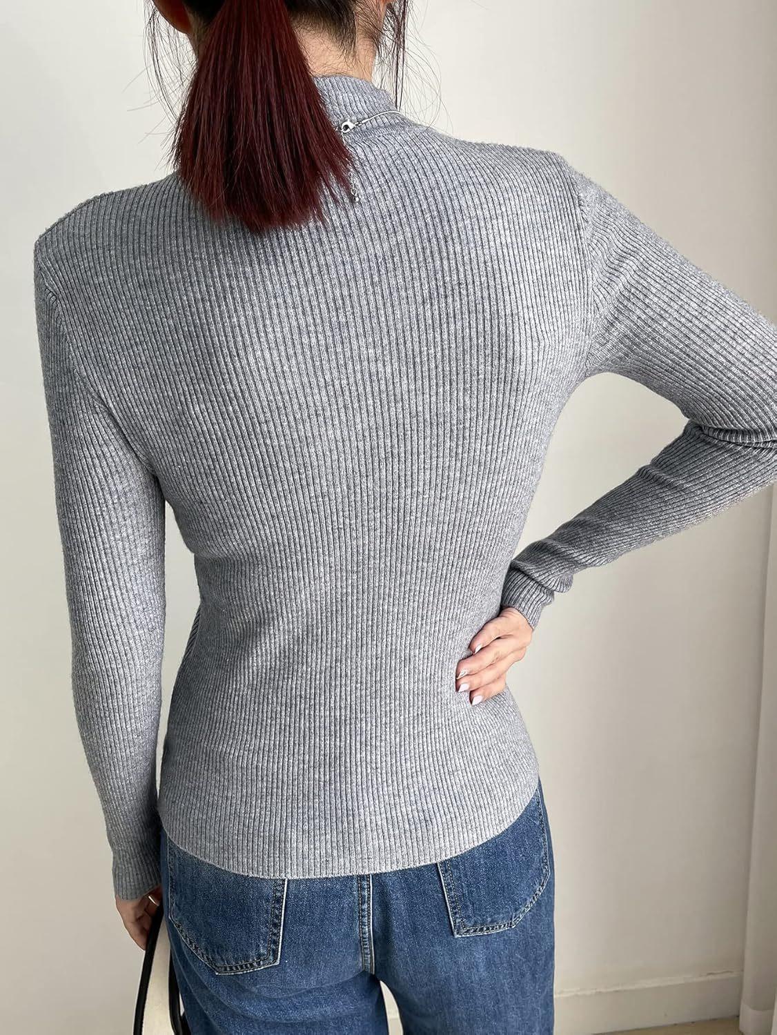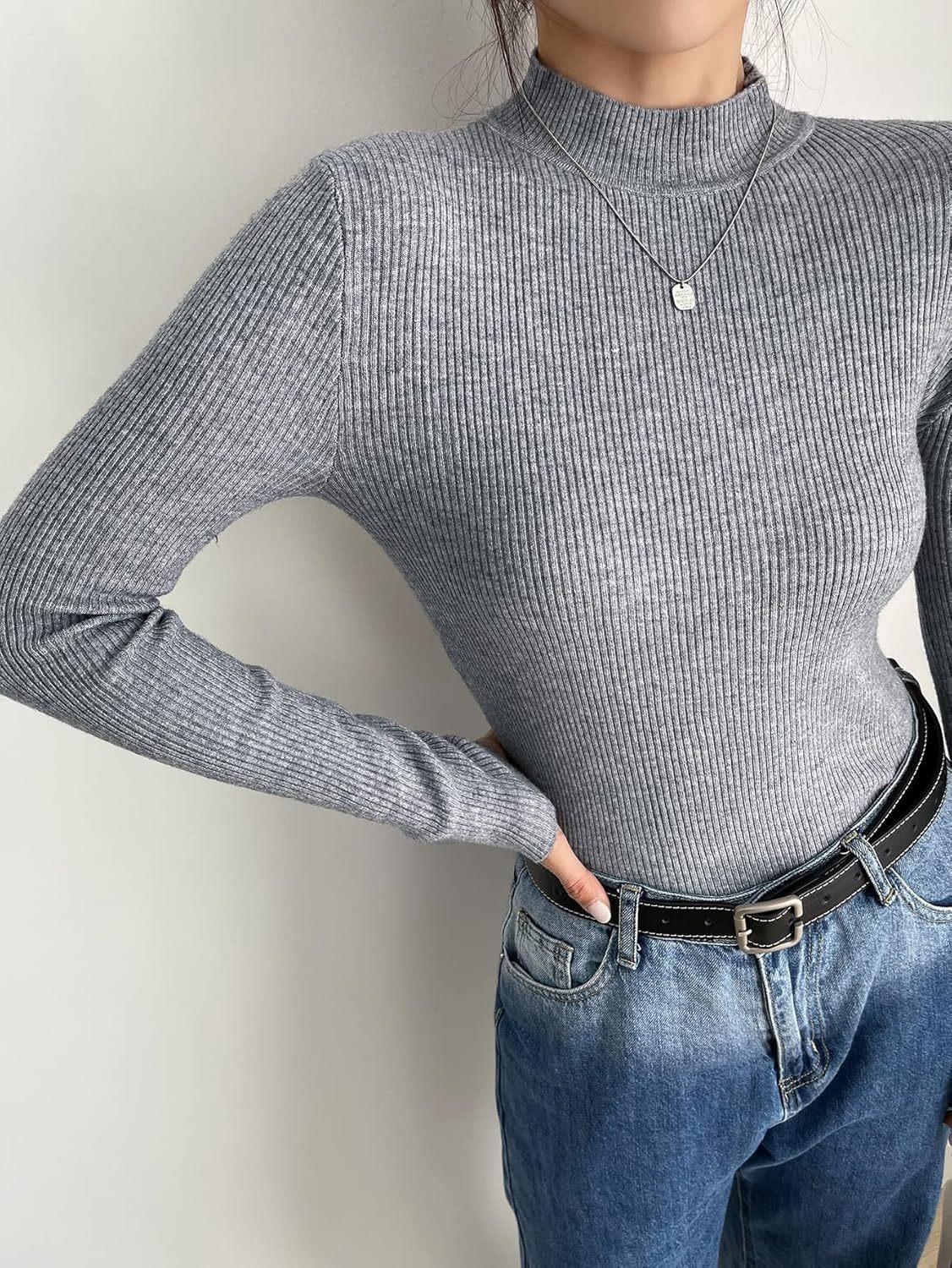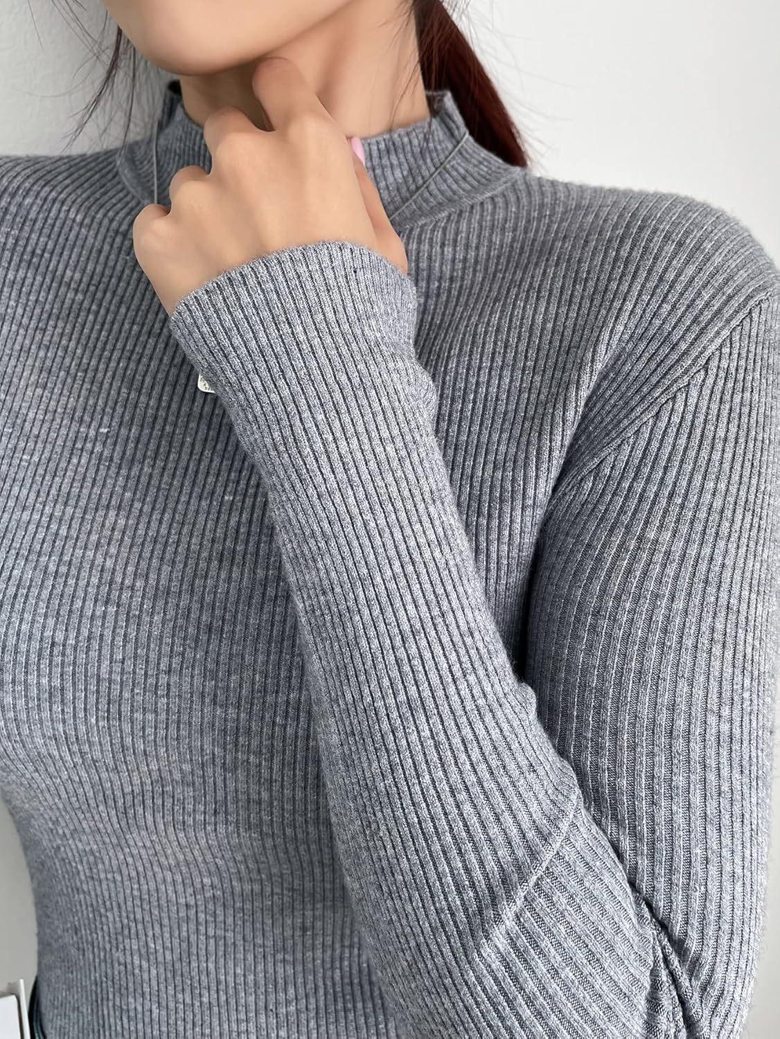 Compra Camiseta básica de cuello medio alto para mujer Otoño Invierno 2025 Nuevo estilo Suéter Manga larga Ajuste ceñido Cuello medio Camisa de punto Ropa interior para ir al trabajo Color sólido al por mayor en Joom.pro