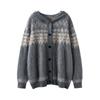 Cárdigan de Cachemir para Mujer Casual Retro Holgado Combinación de Colores Versátil Chaqueta Suéter Tejido con Capucha de Seda