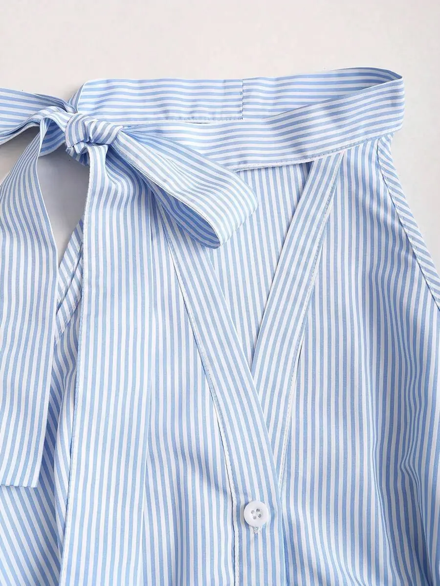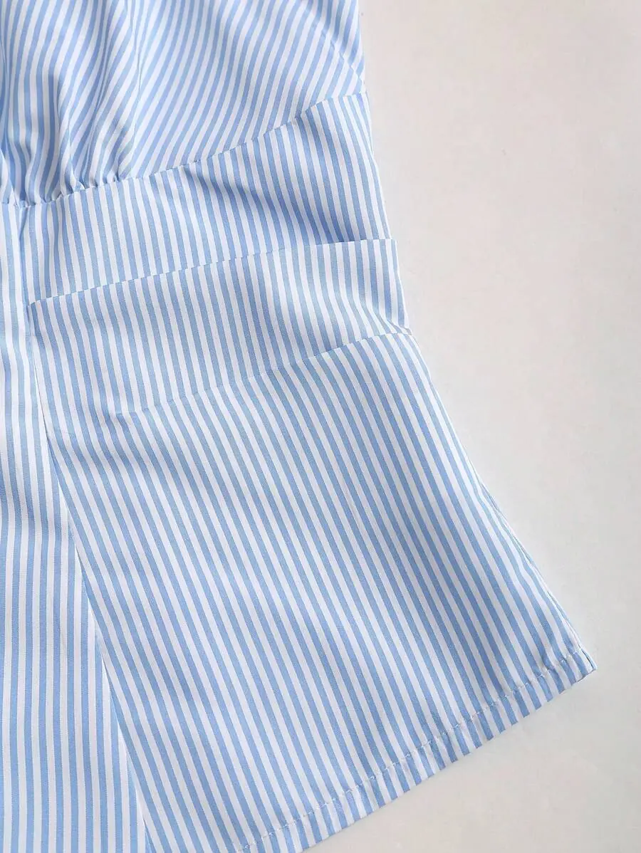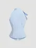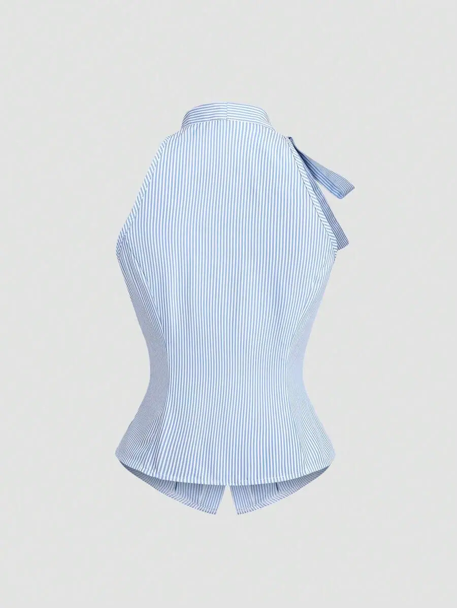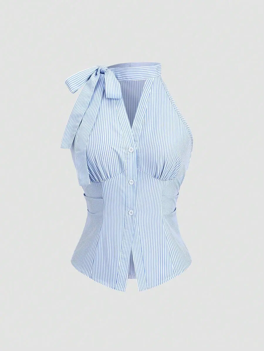 Camiseta sin mangas a rayas para chica caliente pura y sexy, con cuello halter, diseño de nicho con sentido francés para verano, entallada en la cintura, top corto