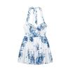 Ropa de Mujer de Exportación Aliexpress Estilo Europeo y Americano Transfronterizo Zr Nuevo Vestido Halter con Estampado de Flores Cuadradas