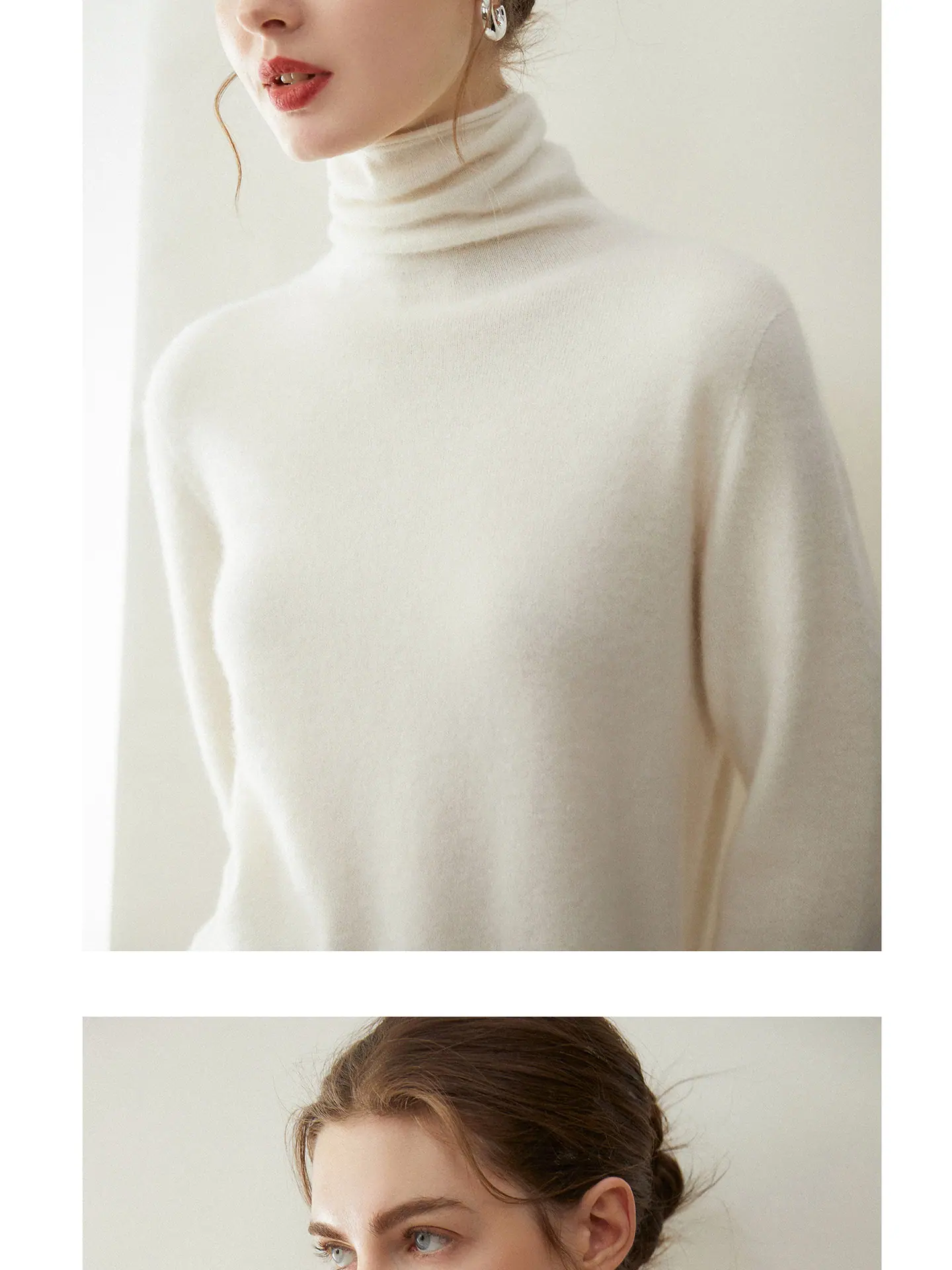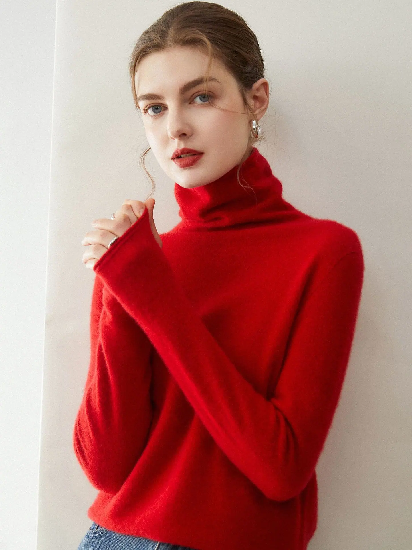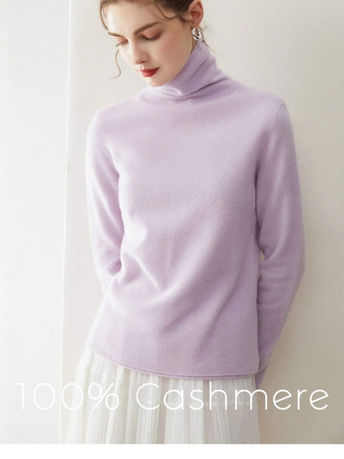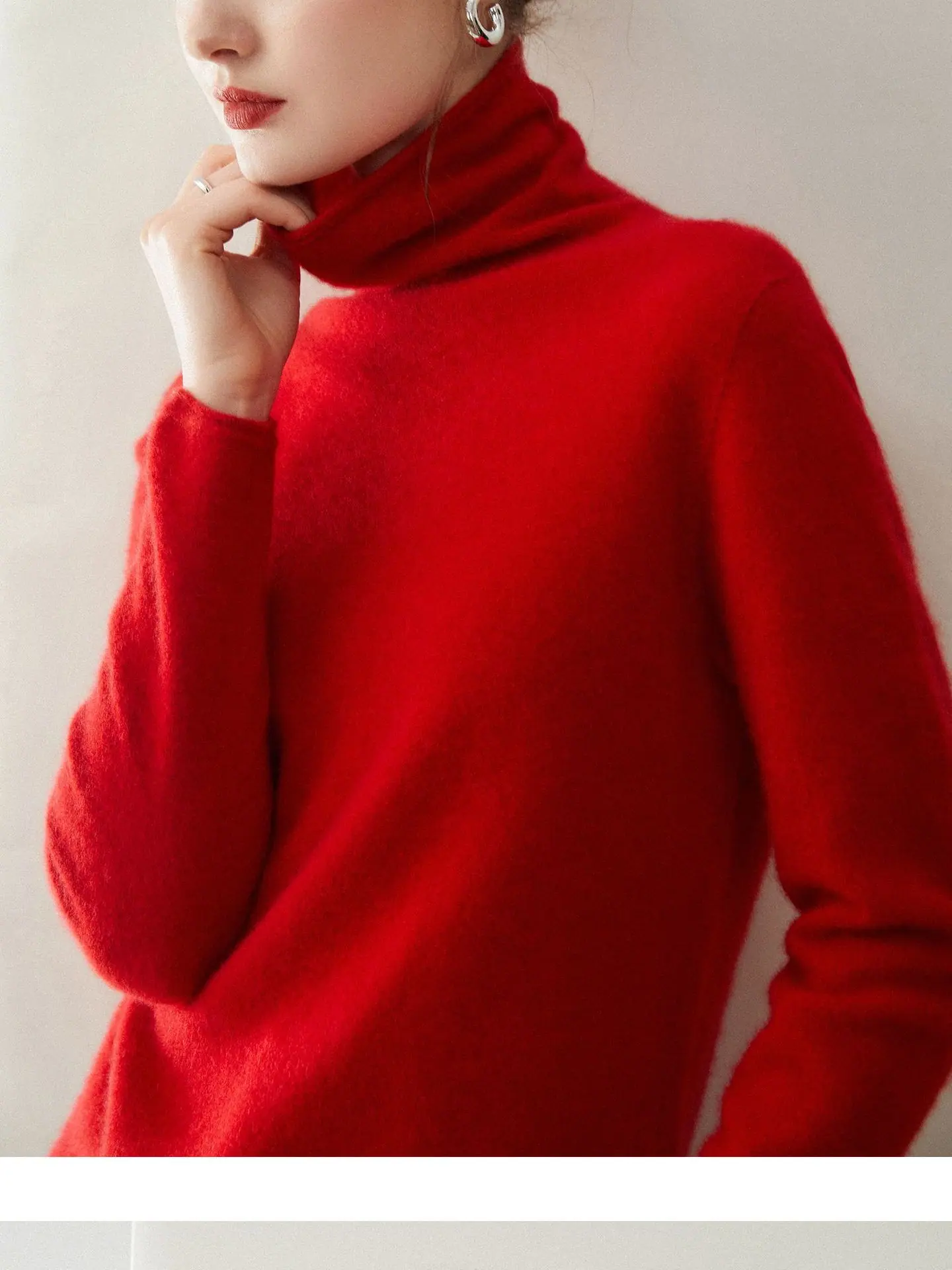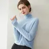 Suéter de Cachemira para Mujer 100% Cachemira Pura Moda Otoño/Invierno Jersey de Cuello Alto Color Sólido Tejido Cálido Base