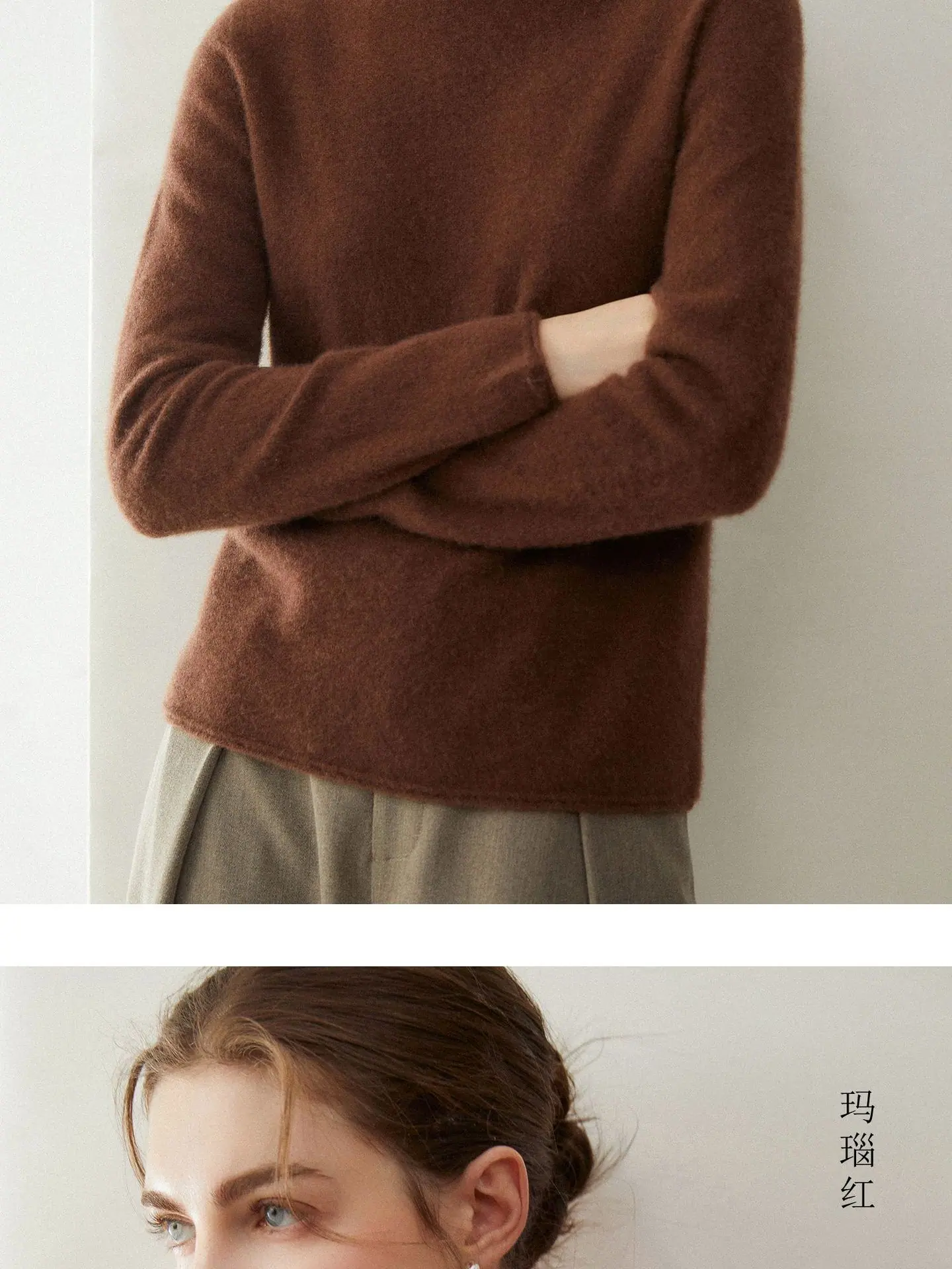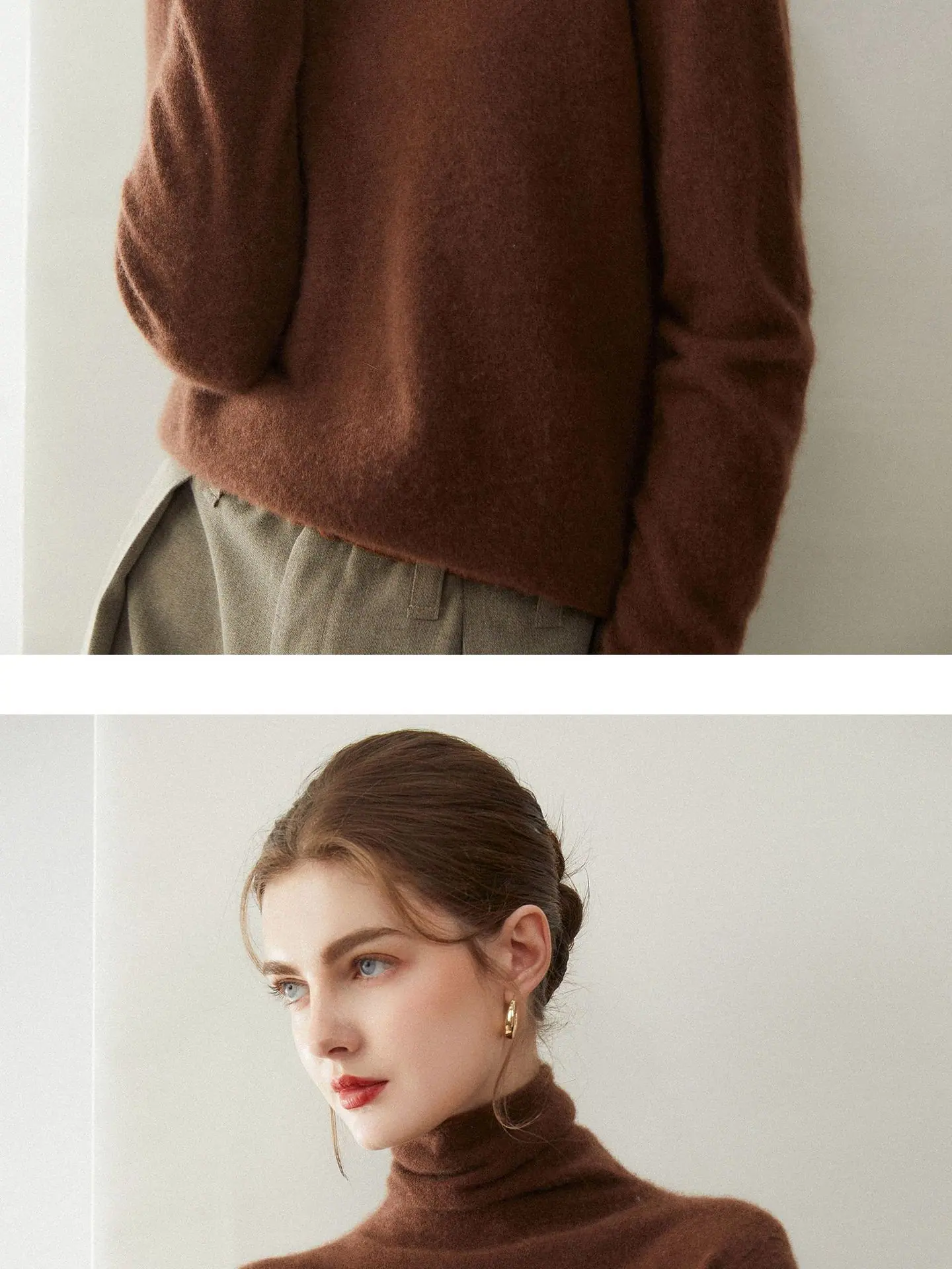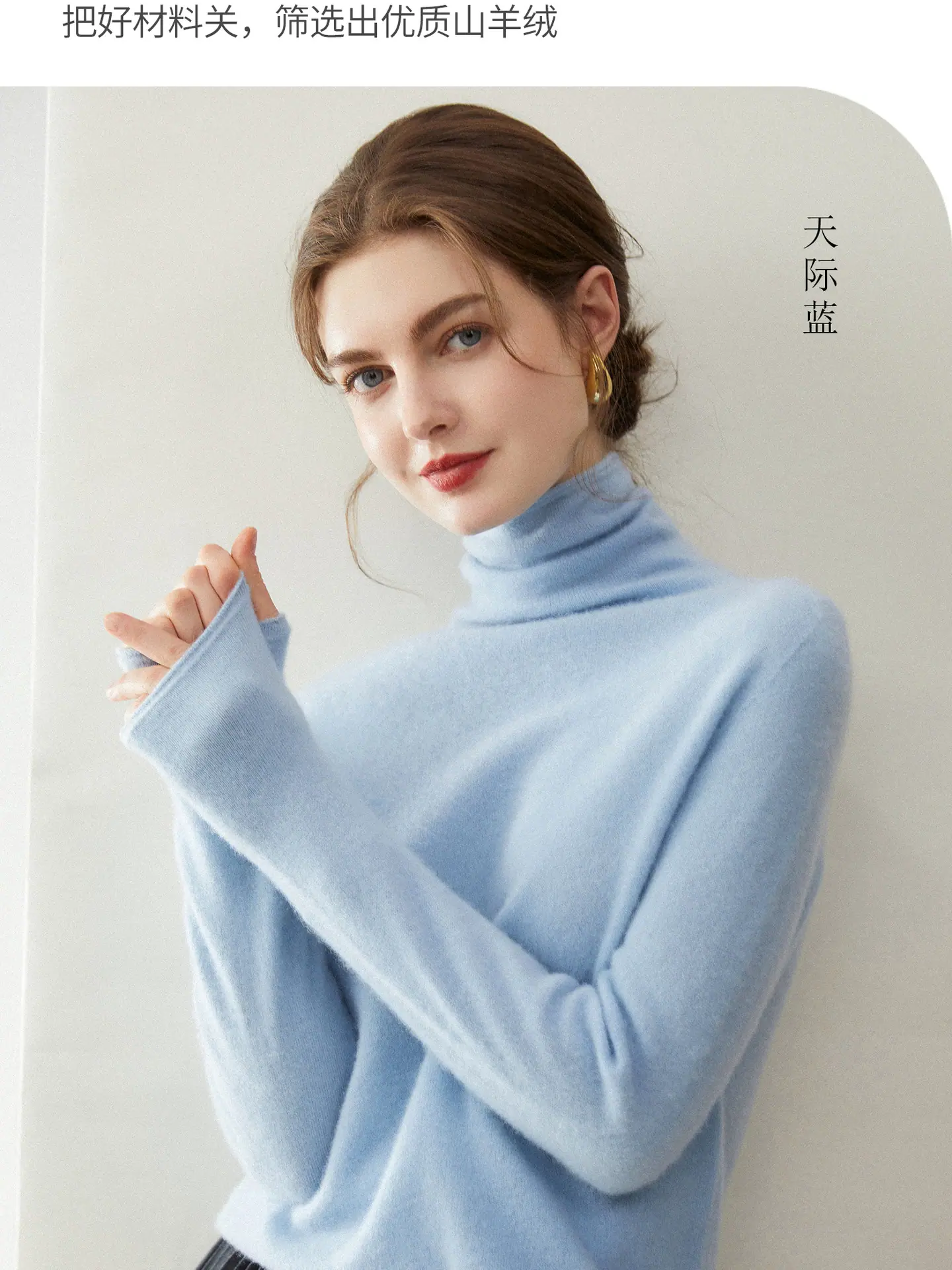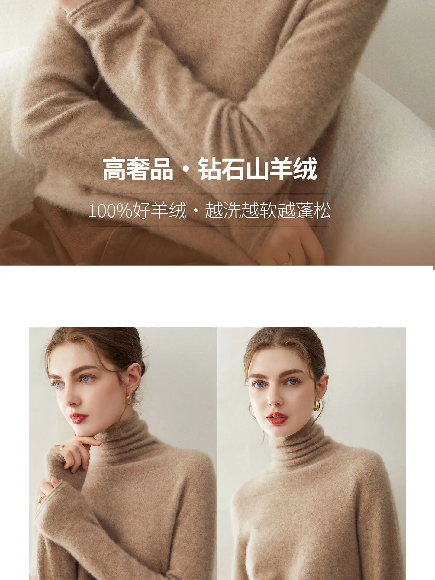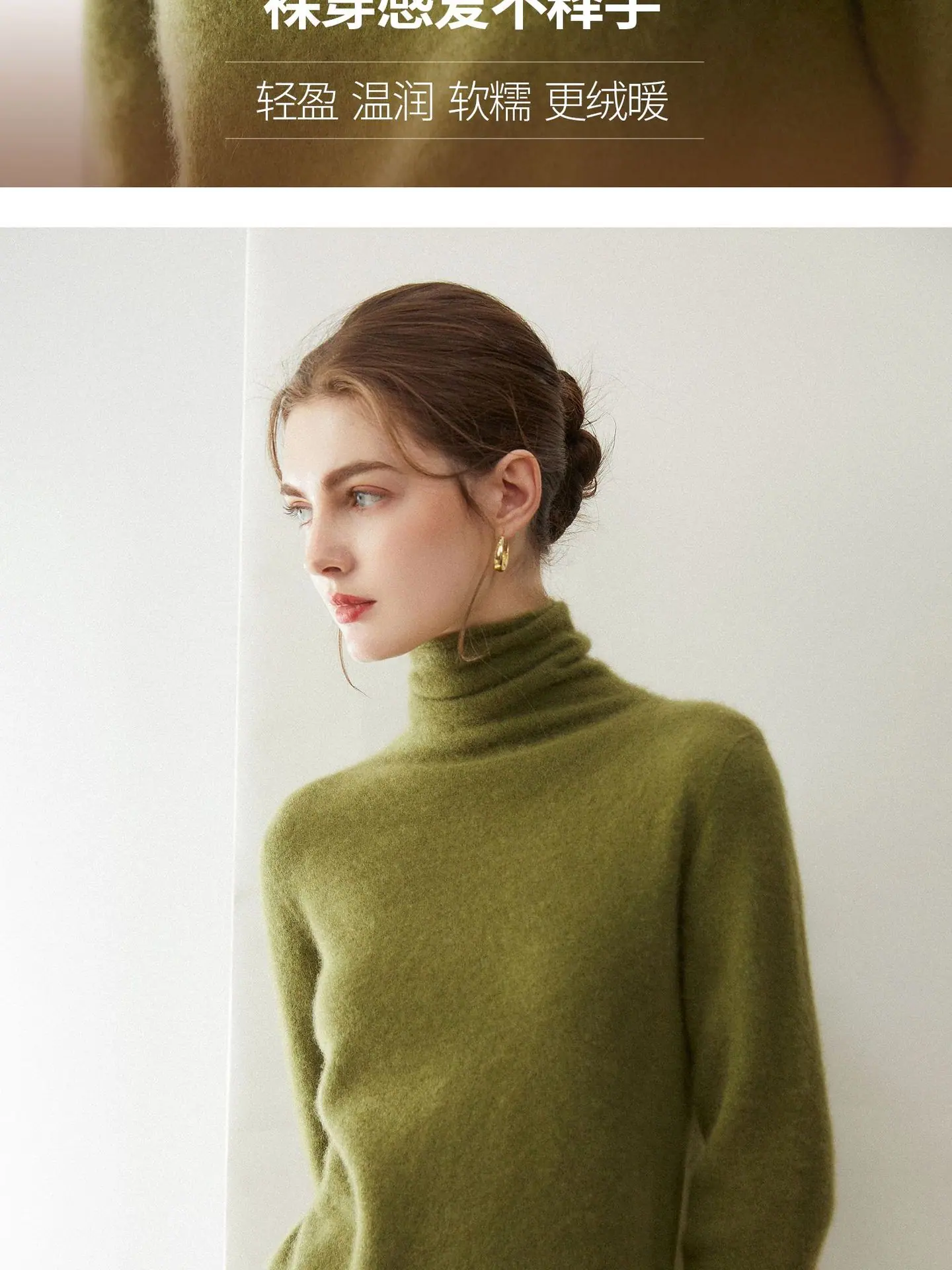 Suéter de Cachemira para Mujer 100% Cachemira Pura Moda Otoño/Invierno Jersey de Cuello Alto Color Sólido Tejido Cálido Base