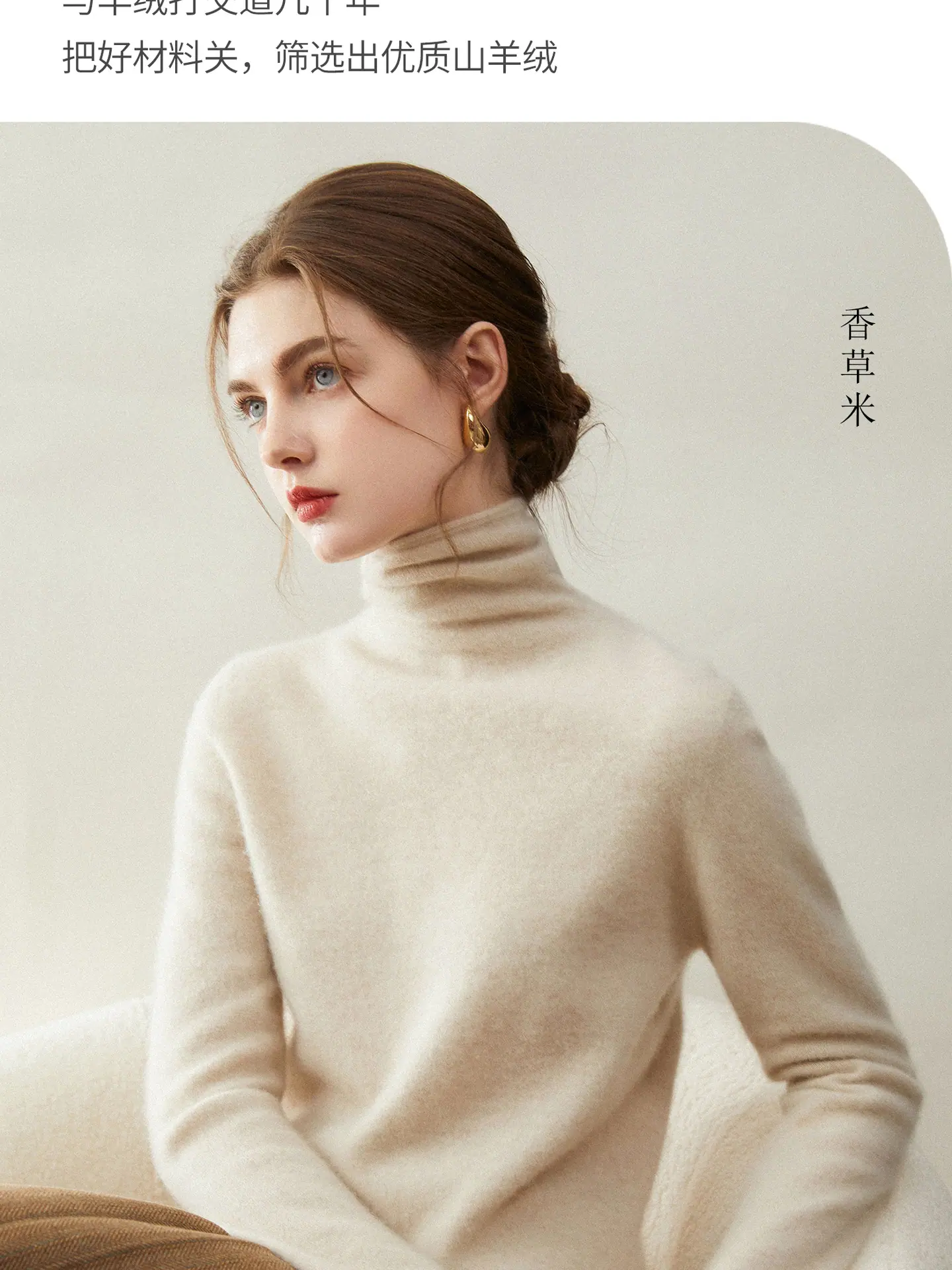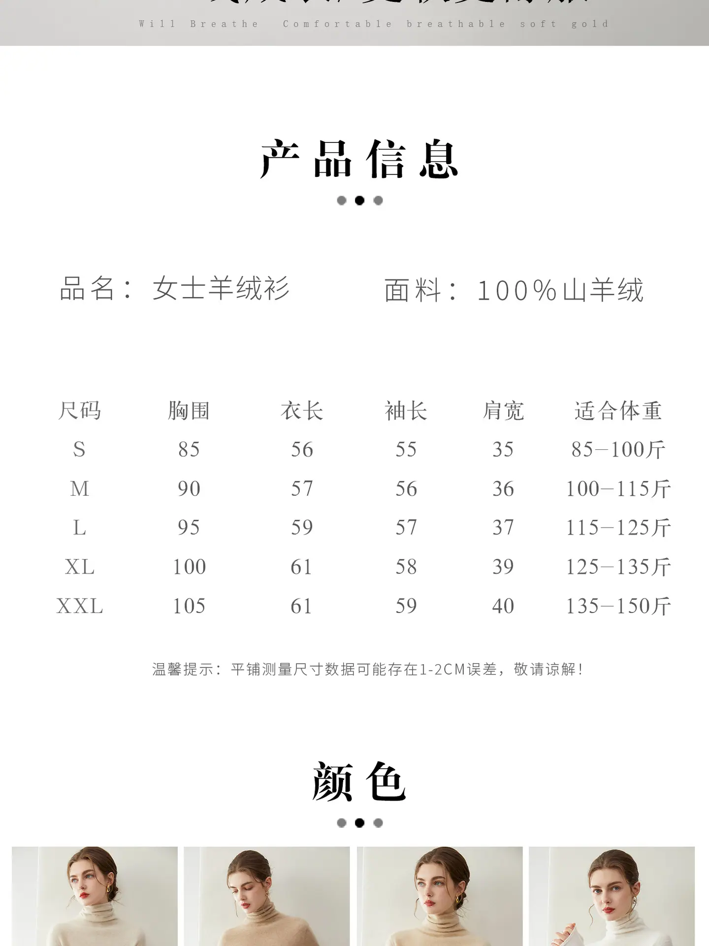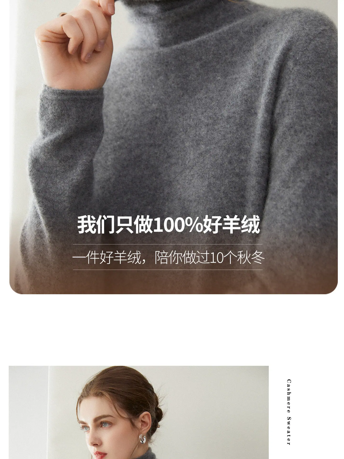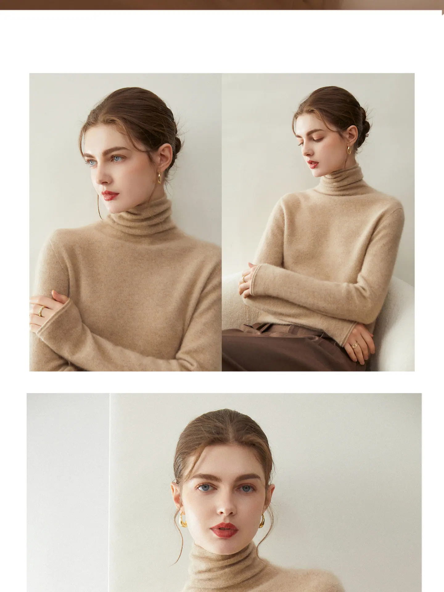 Suéter de Cachemira para Mujer 100% Cachemira Pura Moda Otoño/Invierno Jersey de Cuello Alto Color Sólido Tejido Cálido Base