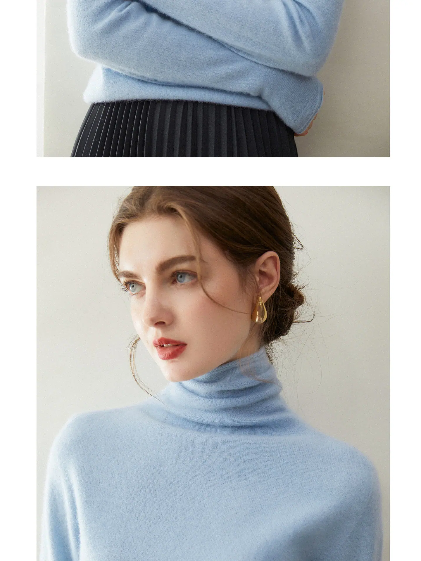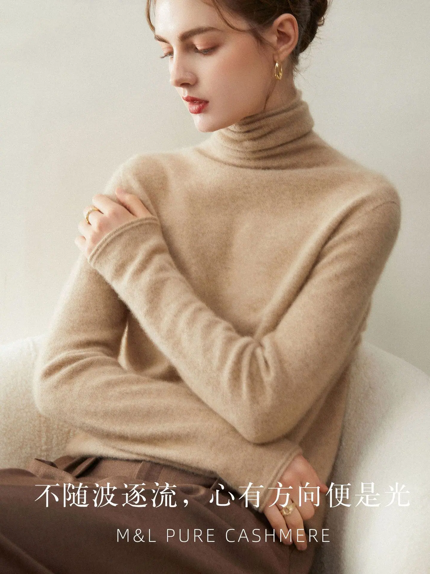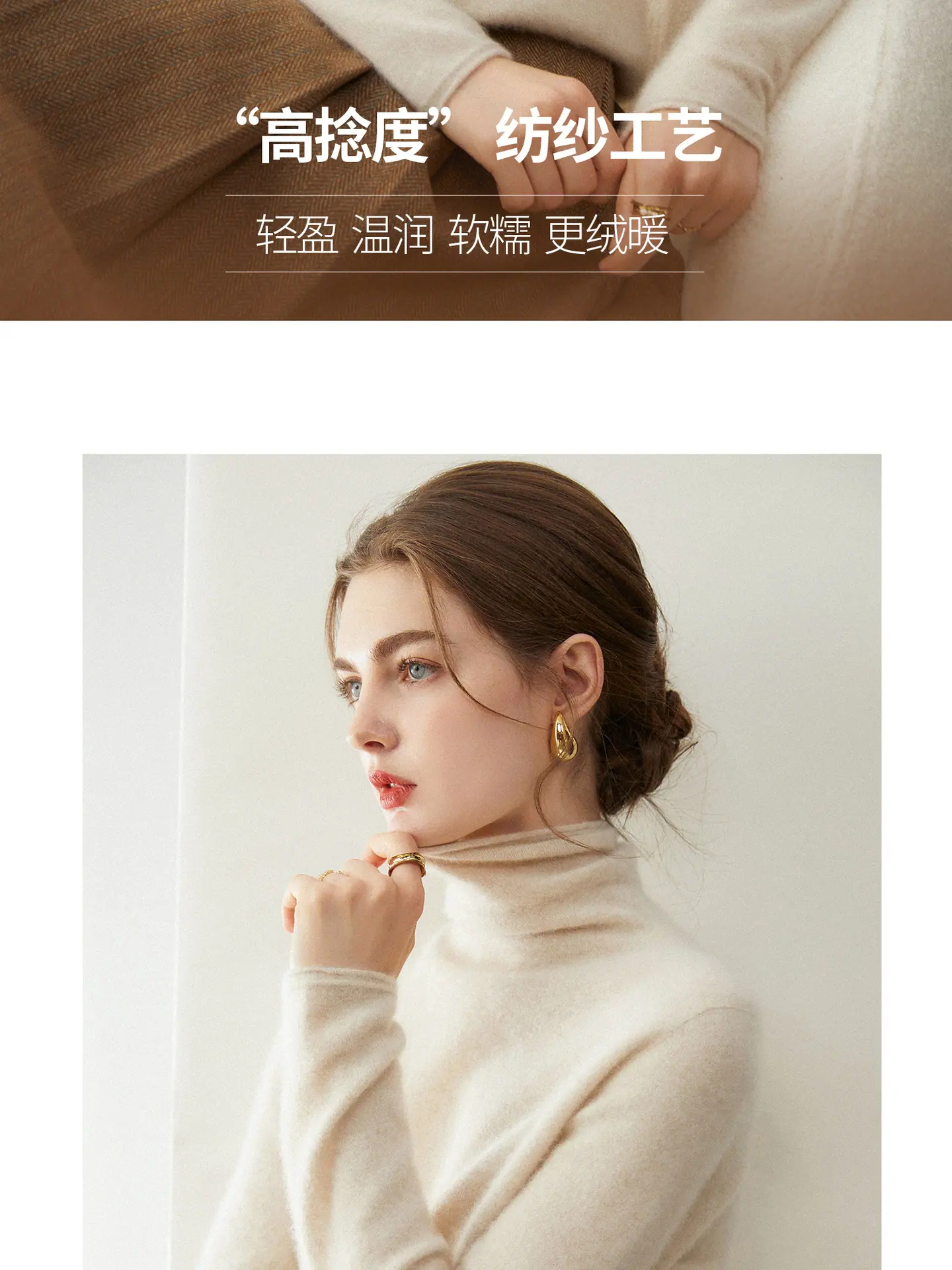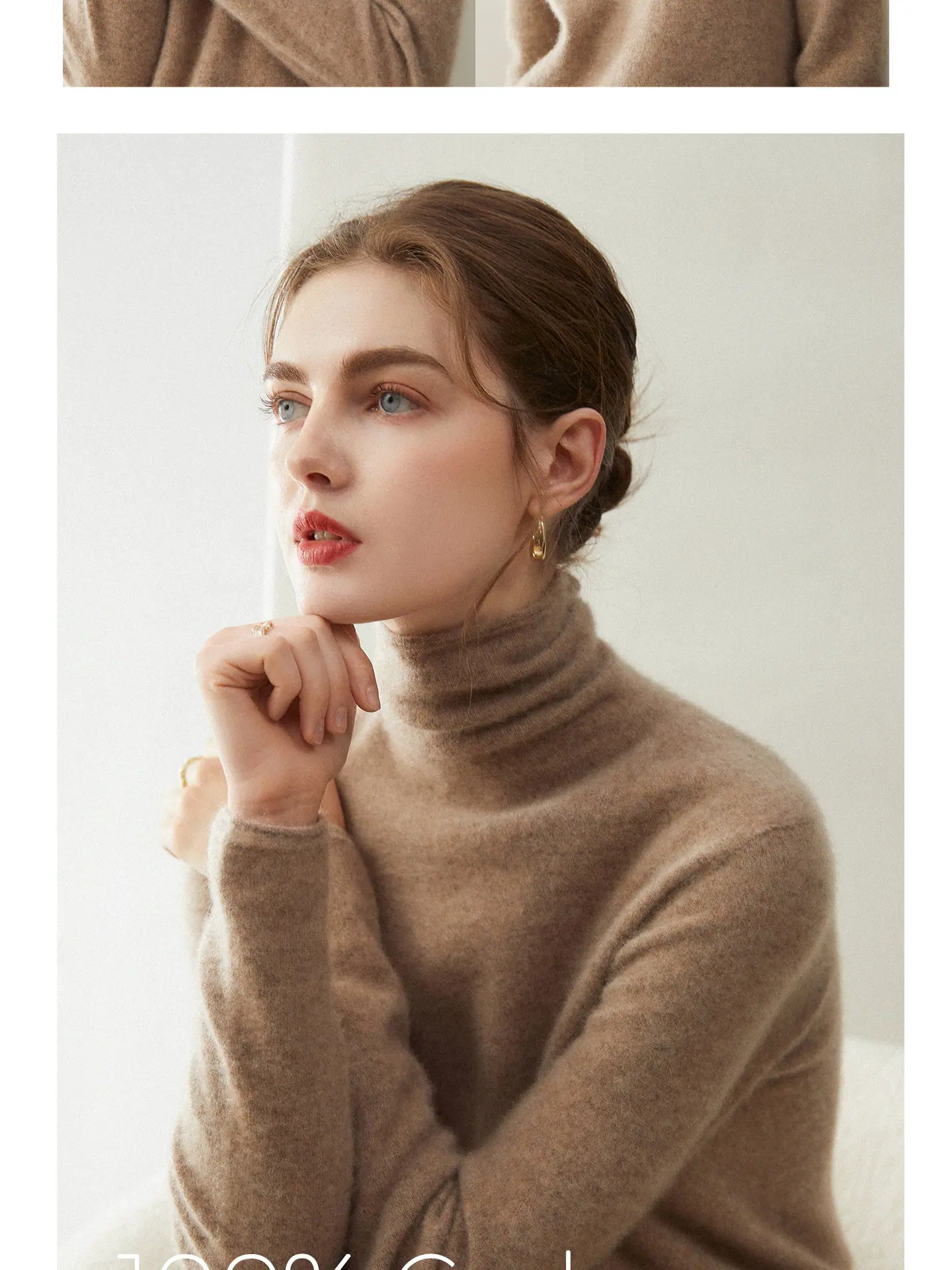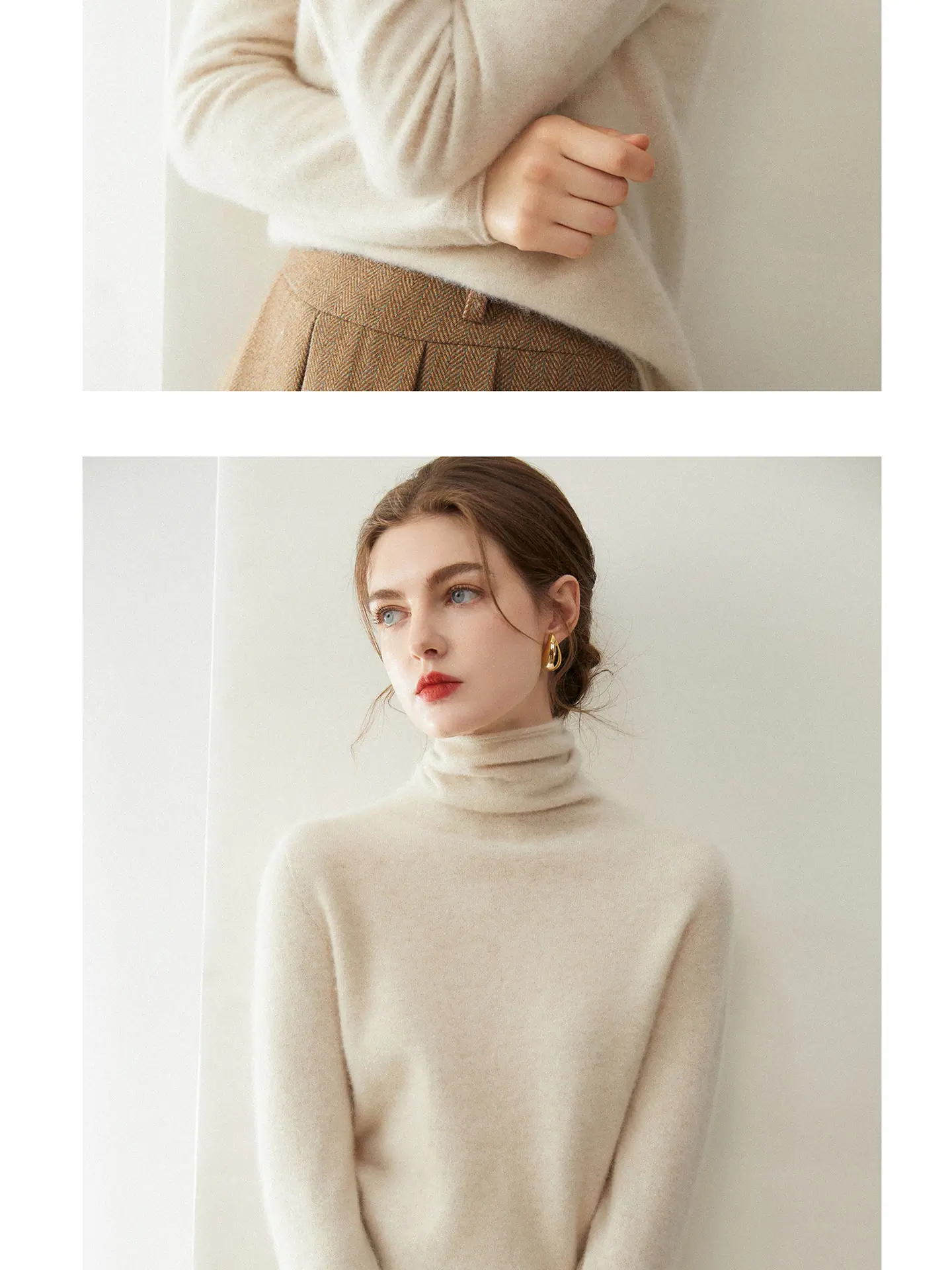 Suéter de Cachemira para Mujer 100% Cachemira Pura Moda Otoño/Invierno Jersey de Cuello Alto Color Sólido Tejido Cálido Base