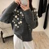 Cardigan de Punto Estilo Coreano con Flor Tridimensional Estilo Girly Chaqueta Otoño e Invierno Nueva Moda Versátil Reductor de Edad Suéter Dulce para Mujer