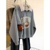 Nueva Sudadera de Cuello Solapa Estilo Coreano para Mujer Otoño Invierno Estilo Universitario Holgada