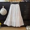 Falda Midi Floral de Bordado Pesado de Alta Gama Estilo Francés para Mujer, Verano 2025, Falda de Pastel por Capas Suelta Plisada con Volantes