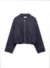 2025 Estilo Europeo y Americano Transfronterizo Chaqueta Bomber de Mezclilla Holgada con Cremallera y Cuello Alto Estilo Globo con Puntada Abierta